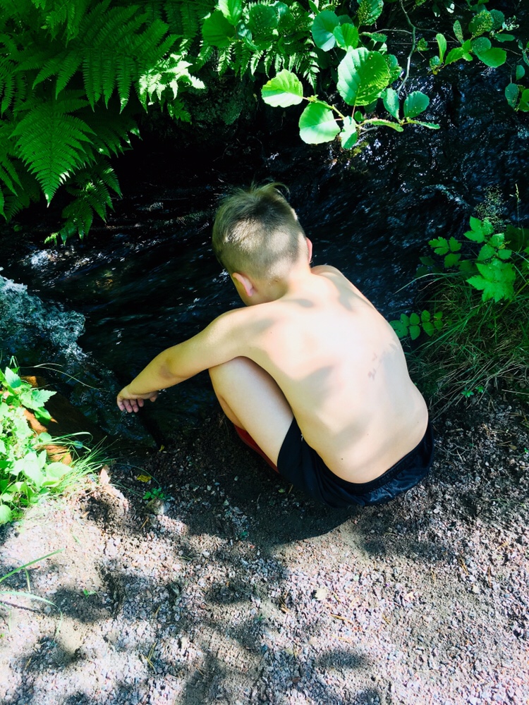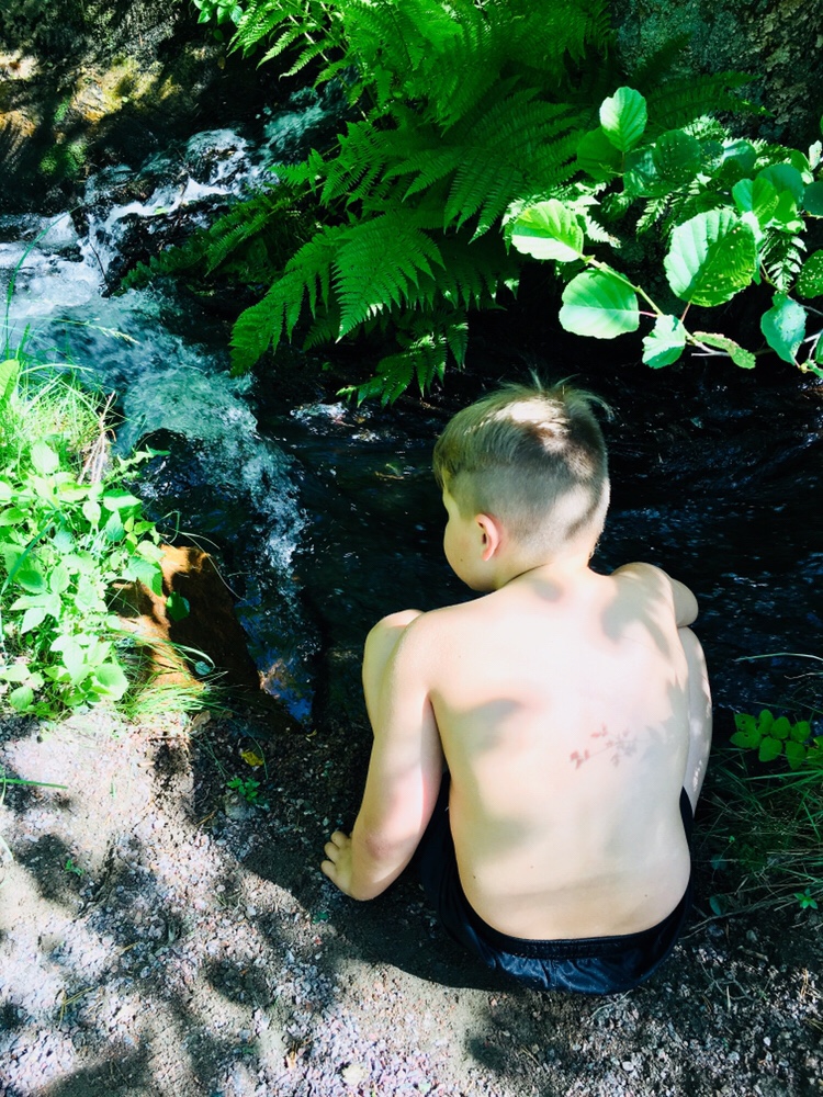 Här ovan var Milo så varm så han doppade huvudet i ett litet vattendrag. Alltså – fifasen så glad jag är över att få se så mycket av Sverige genom det här sättet att semestra. Vi besöker nästan alltid något nytt ställe, ofta har vi fastnat för fina ställen men oftast blir det något nytt ställe också.