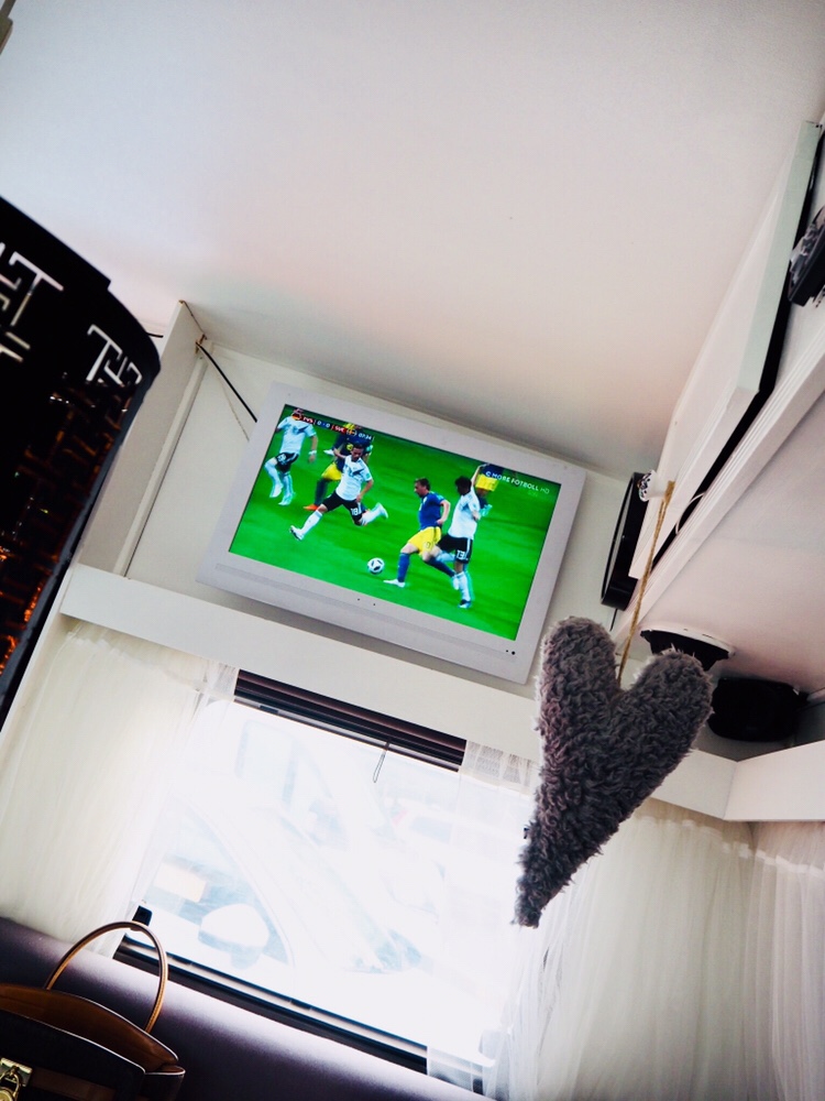 Vi hann precis rigga allt till fotbollen. Men det var verkligen på det berömda håret. När vi sen satte igång TV:n så hade vi inte C-mores sportpaket så då blev vi tvungna att ordna det också.