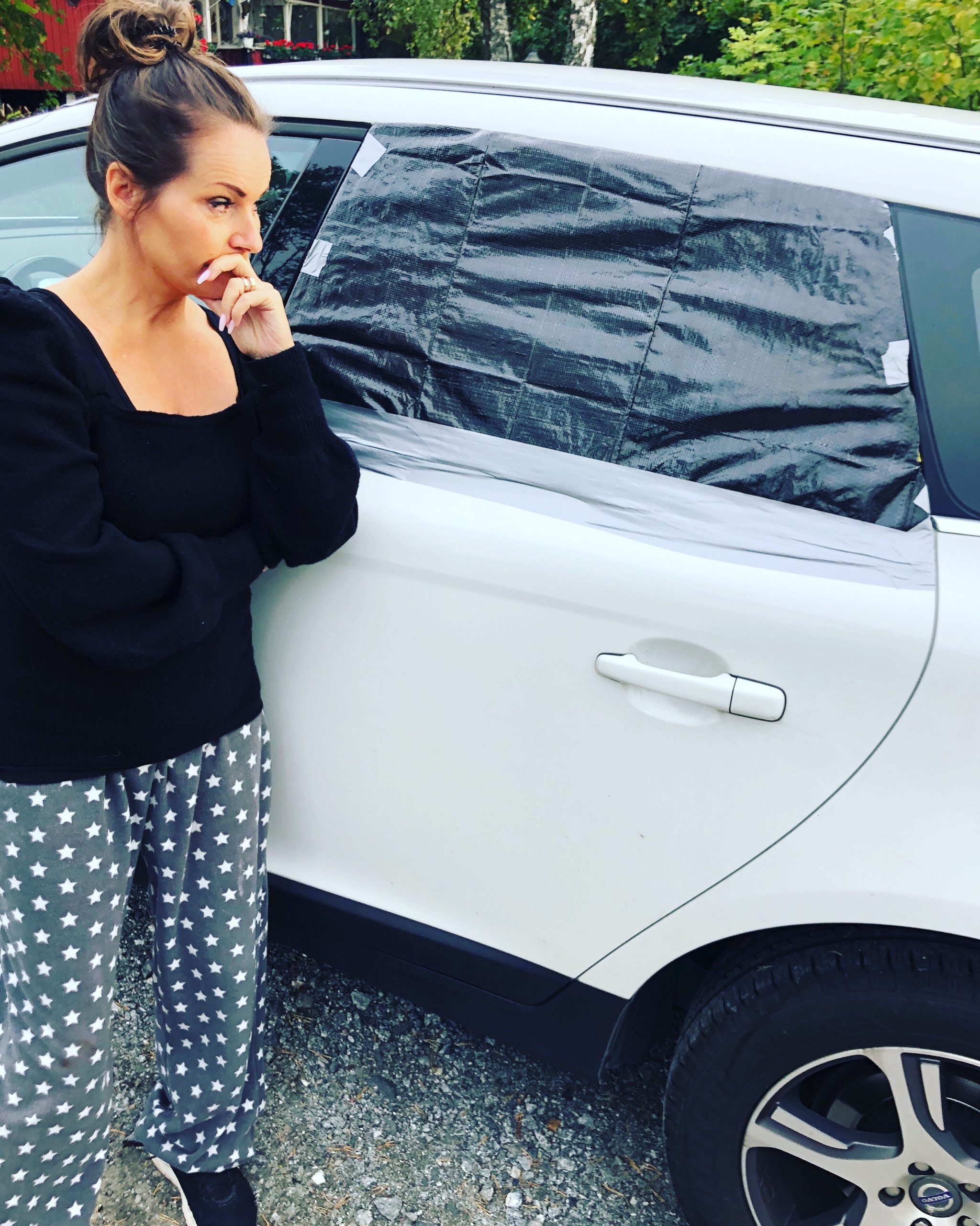 Såg att bilen stod snett på morgonen ..undrade ”hur har jag parkerat här da…