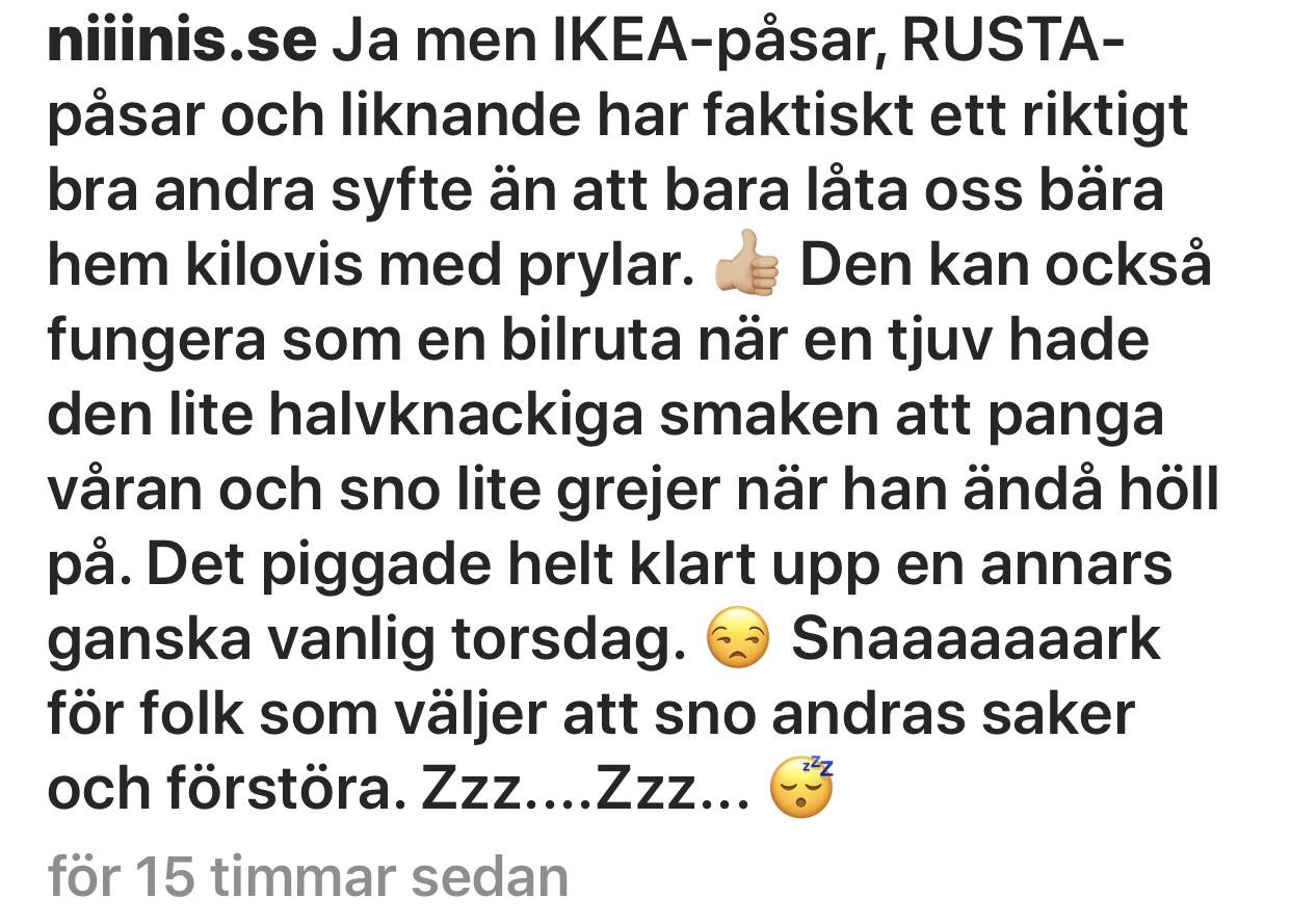 Igår la jag upp det här på Instagram. Less för att det blev en massa onödigt meck mitt i vår flytt dessutom. Bilen går ju inte att köra utan ruta liksom. Ja men ni fattar, meckigt och så jädrans onödigt. Han kommer ju inte kunna använda datorn ens och för oss blev det onödigt tjafs. I alla fall…. jag skrev detta och fick en sån här kommentar: