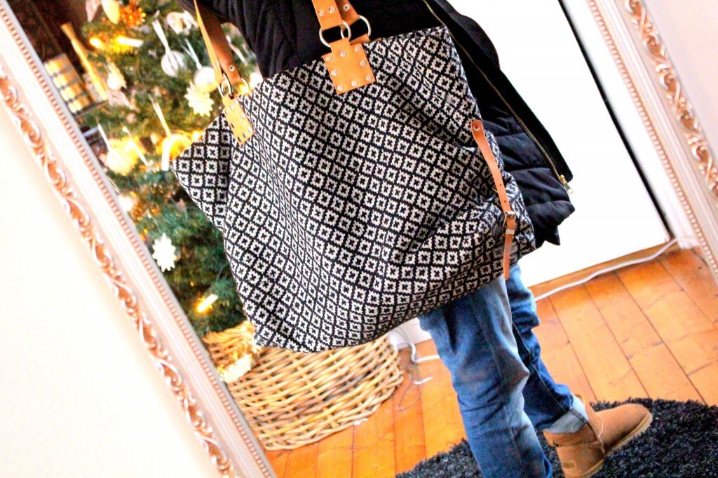 Vilket märke är det på väskan du har på bilden längst ner? Alltså den svart/vita med bruna remmarTack