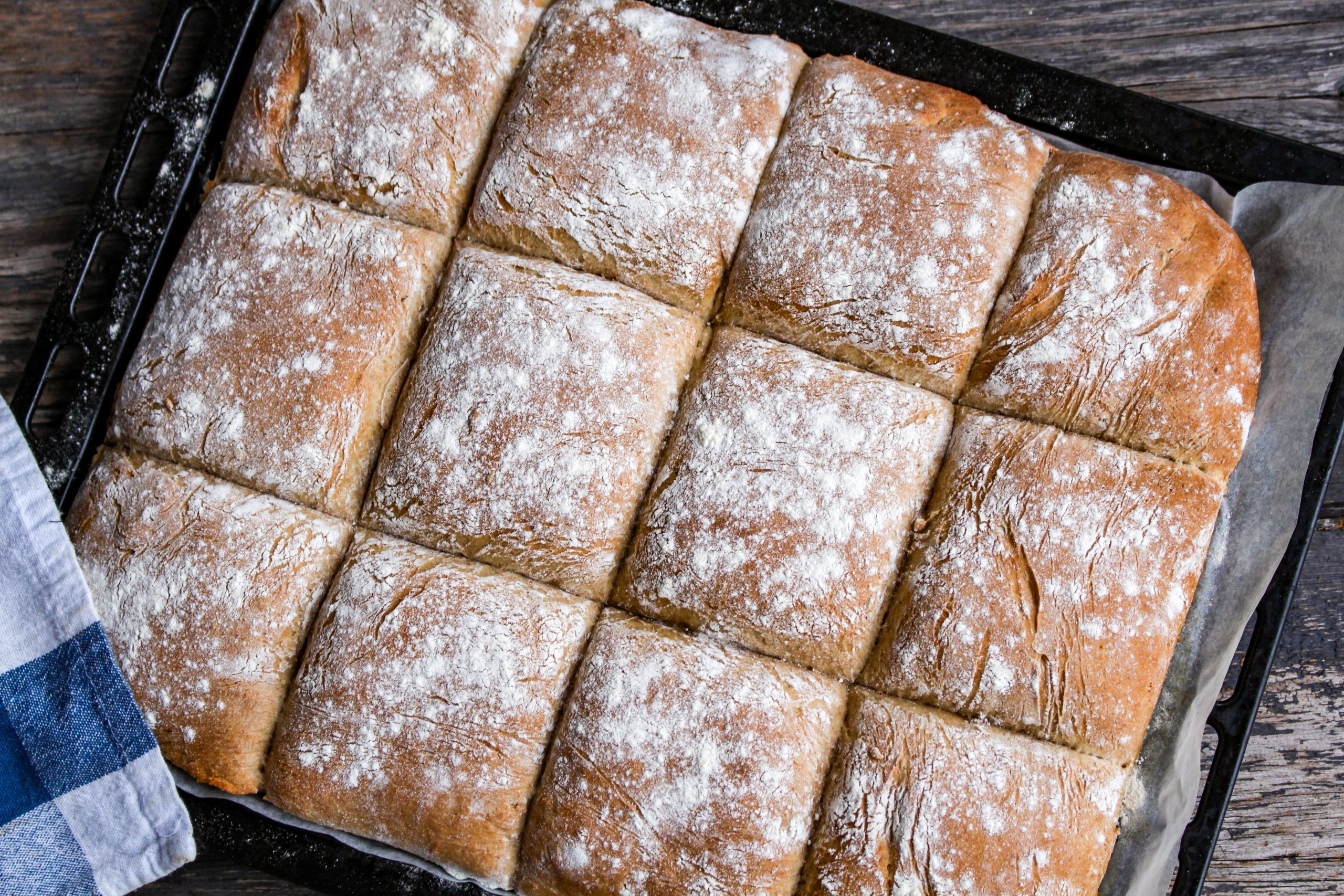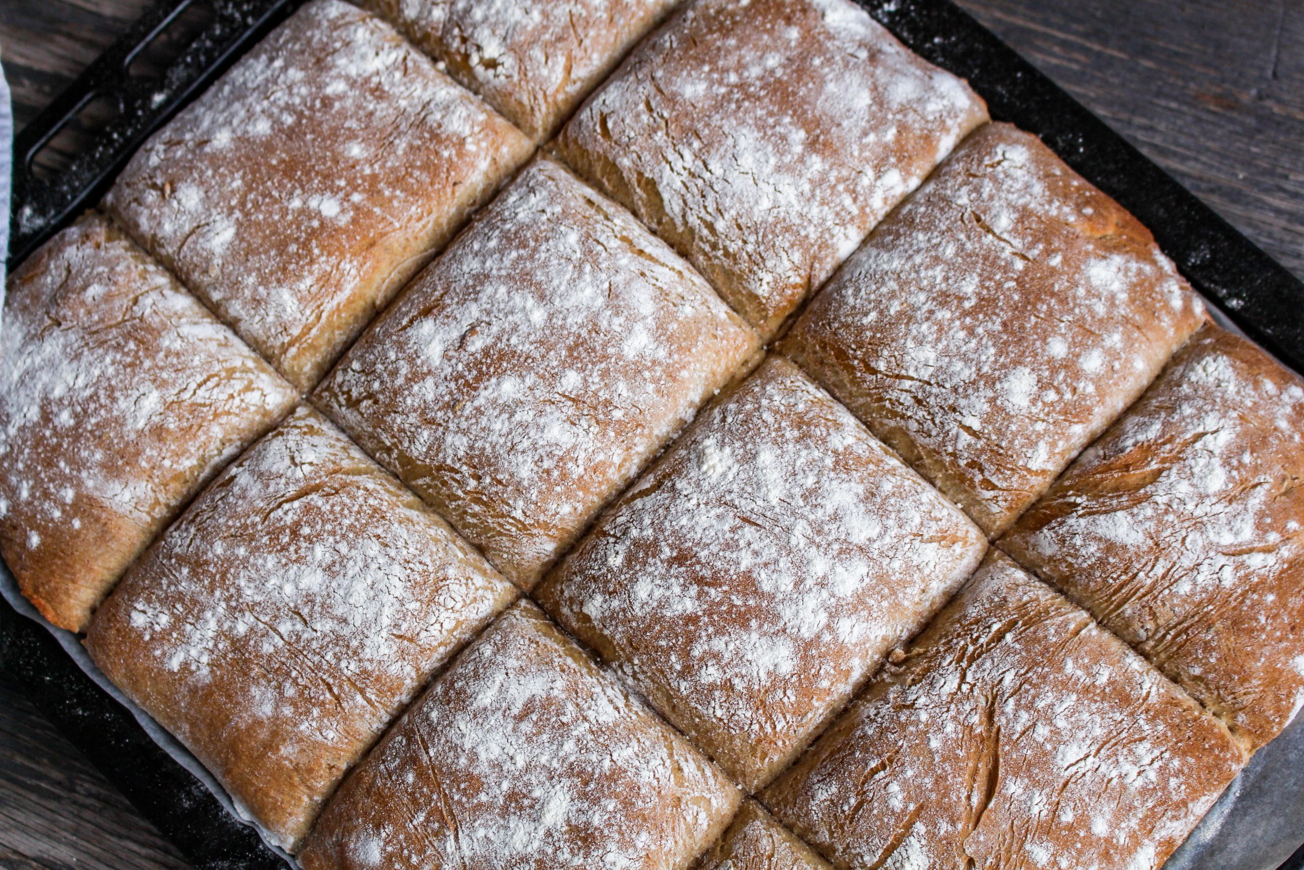 Oj oj vad jag hattat runt med sömnen inatt. Dock så somnade jag om på småtimmarna och sov ända till halv 8. Hela dagen har ju hunnit gå nästan. Haha… Nu ska du få ett FANTATISKT recept på långpannebröd gjord på dinkelmjöl utav mig. Detta bröd är bakat på både vanligt siktat dinkelmjöl, fullkornsdinkel och lite vetemjöl. Dinkelmjöl har lägre GI än vanligt vetemjöl.