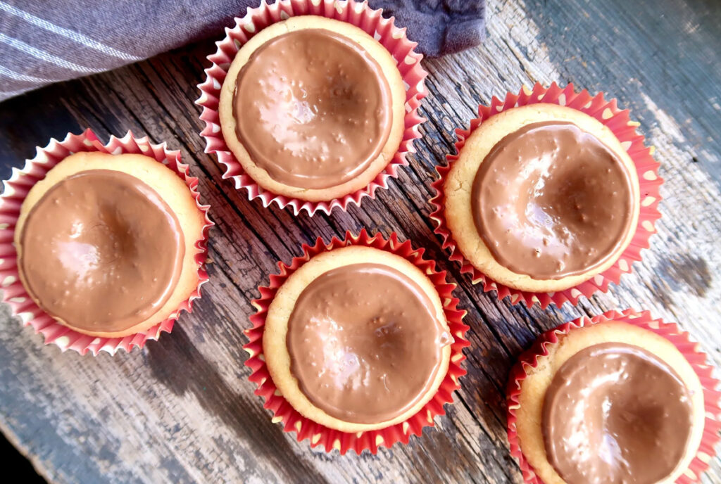 5) Grädda på 200 grader i ca 12-15 min. De ska precis börja då lite lite färg. Ta ut och lägg genast på noblessekakor på varje så de får smälta ned fint över kakorna.