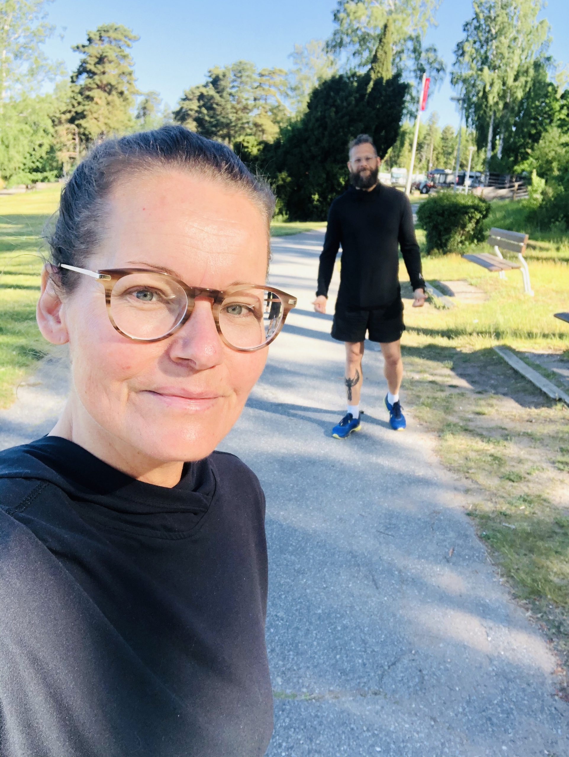 Min galning till man tyckte inte det räckte med en timmas promenad, så han drog ut och sprang drygt 7 km efteråt också. Är man fast i löpning så är man. Alla man pratar med som löper säger samma sak. Det är som ett gift. Ett skönt gift som man inte kan vara utan. Jag har då aldrig råkat ut för det där löpningsgiftet med mitt lilla rekord på 6 km löpning utan och stanna. Efter det rekordet var jag lila i ansiktet i en vecka typ. Herregud så jobbigt! Jag beundrar folk som löper för det är verkligen svinjobbigt!