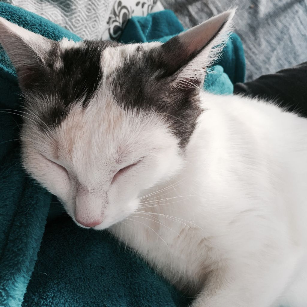 Hon ligger just i detta nu och spinner på mitt bröst. ❤️