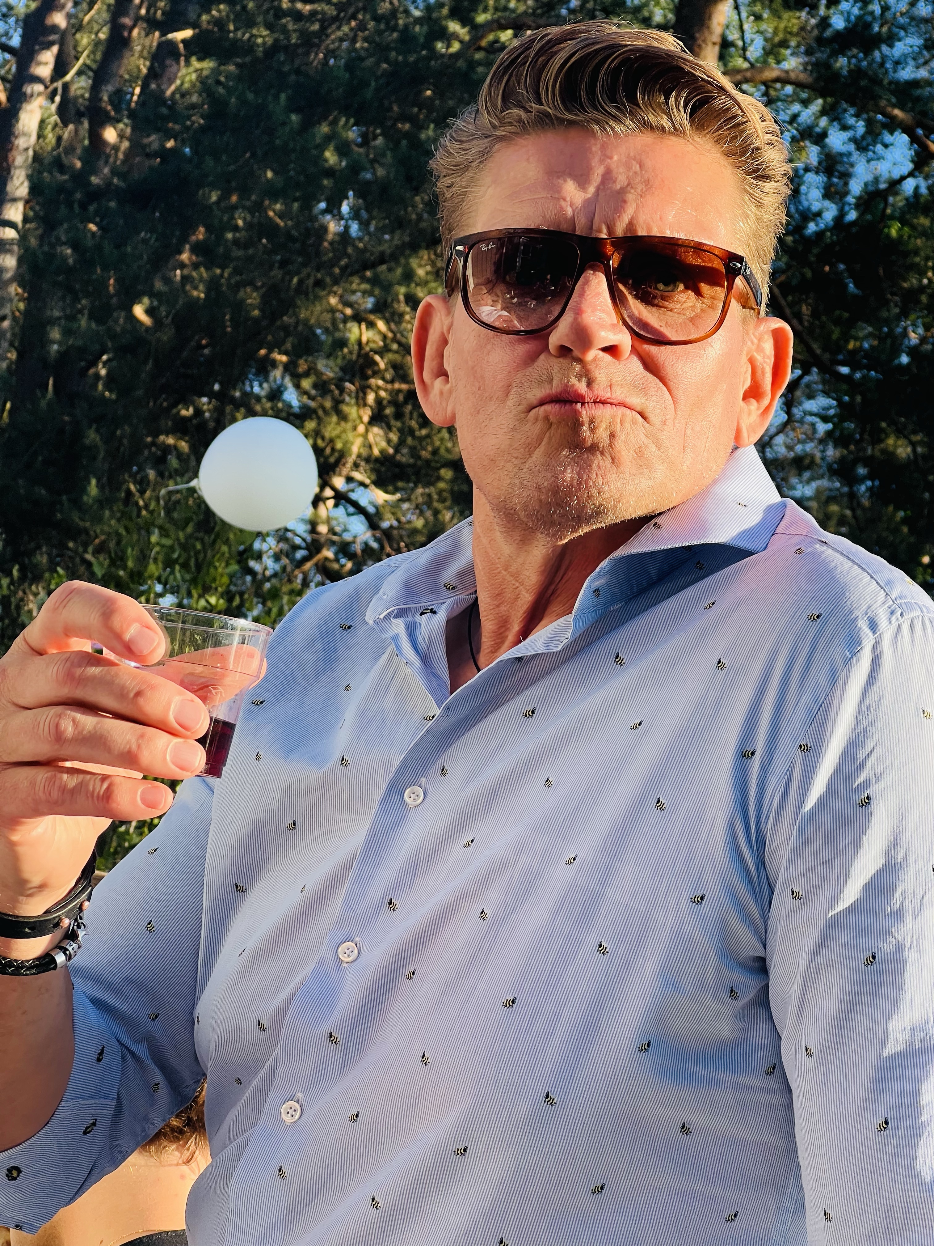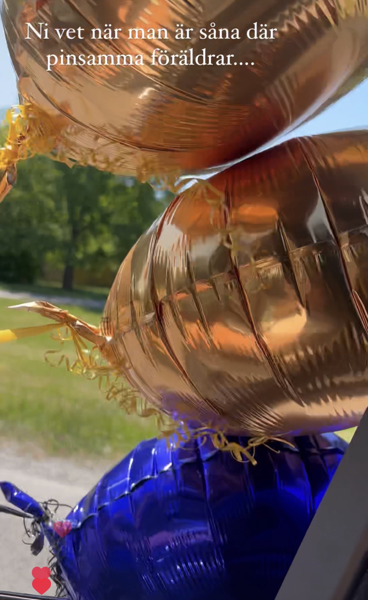 Vi var världens pinsammaste föräldrar som kom med ballonger flygandes ur framrutan. Haha, lite kul måste man få ha med de små liven. Det var inte många som stod där heller som tur var för honom. 😂