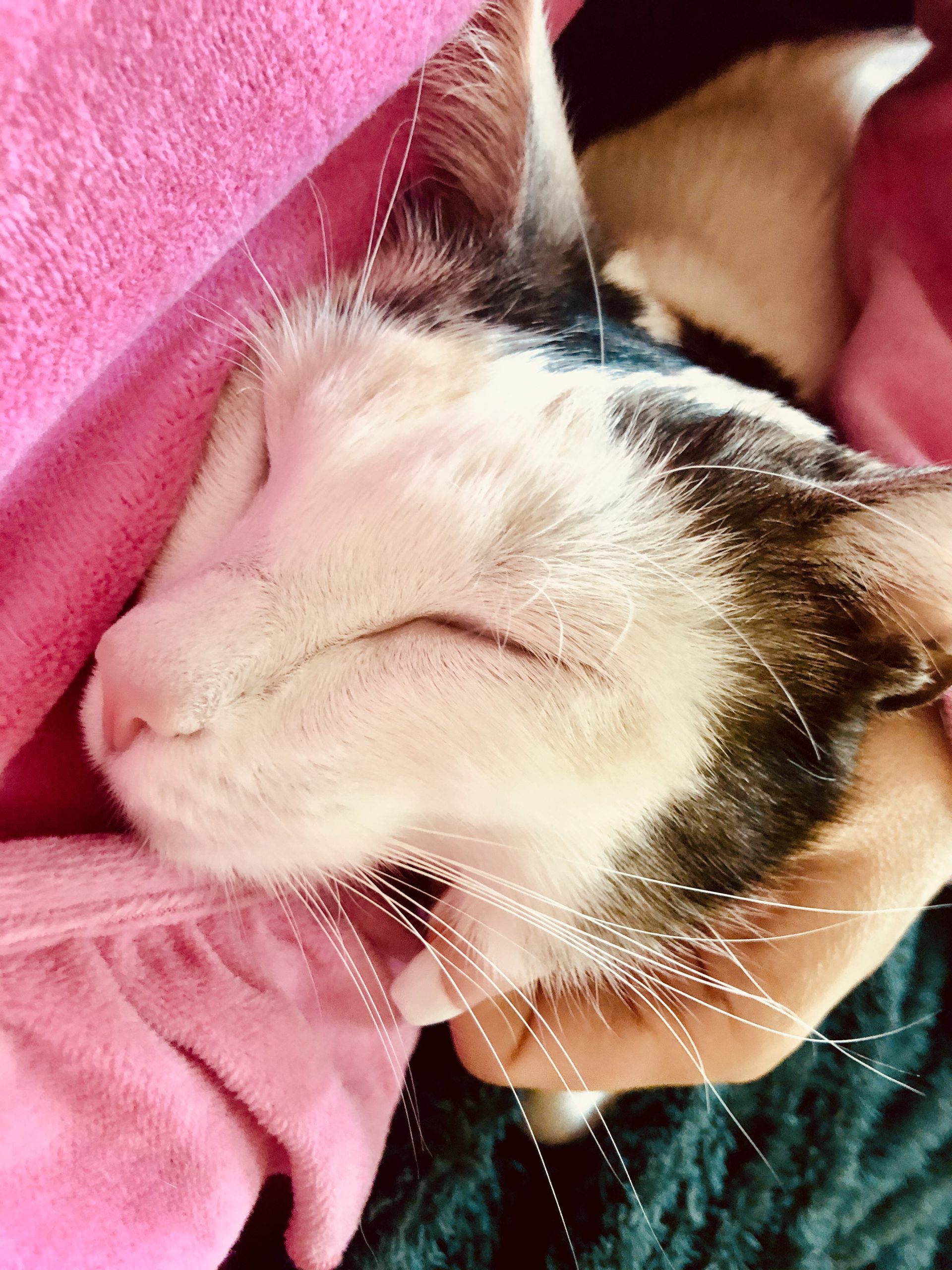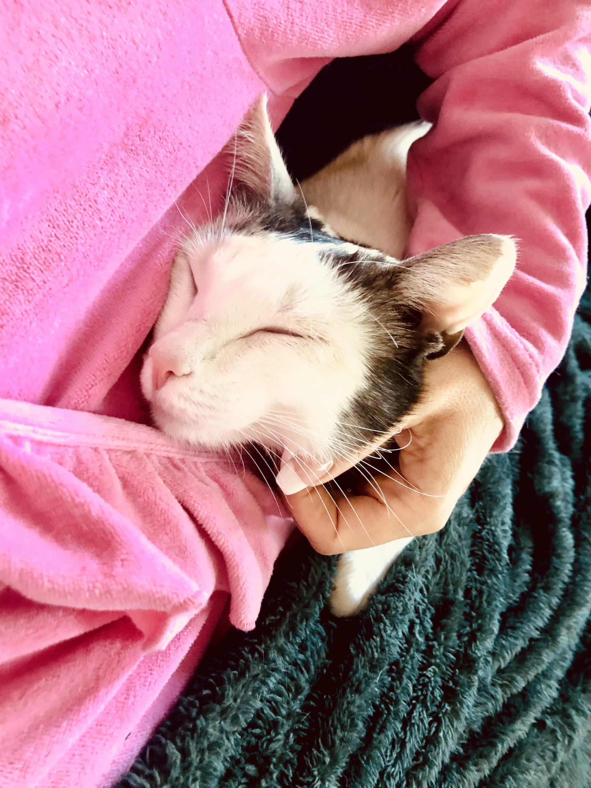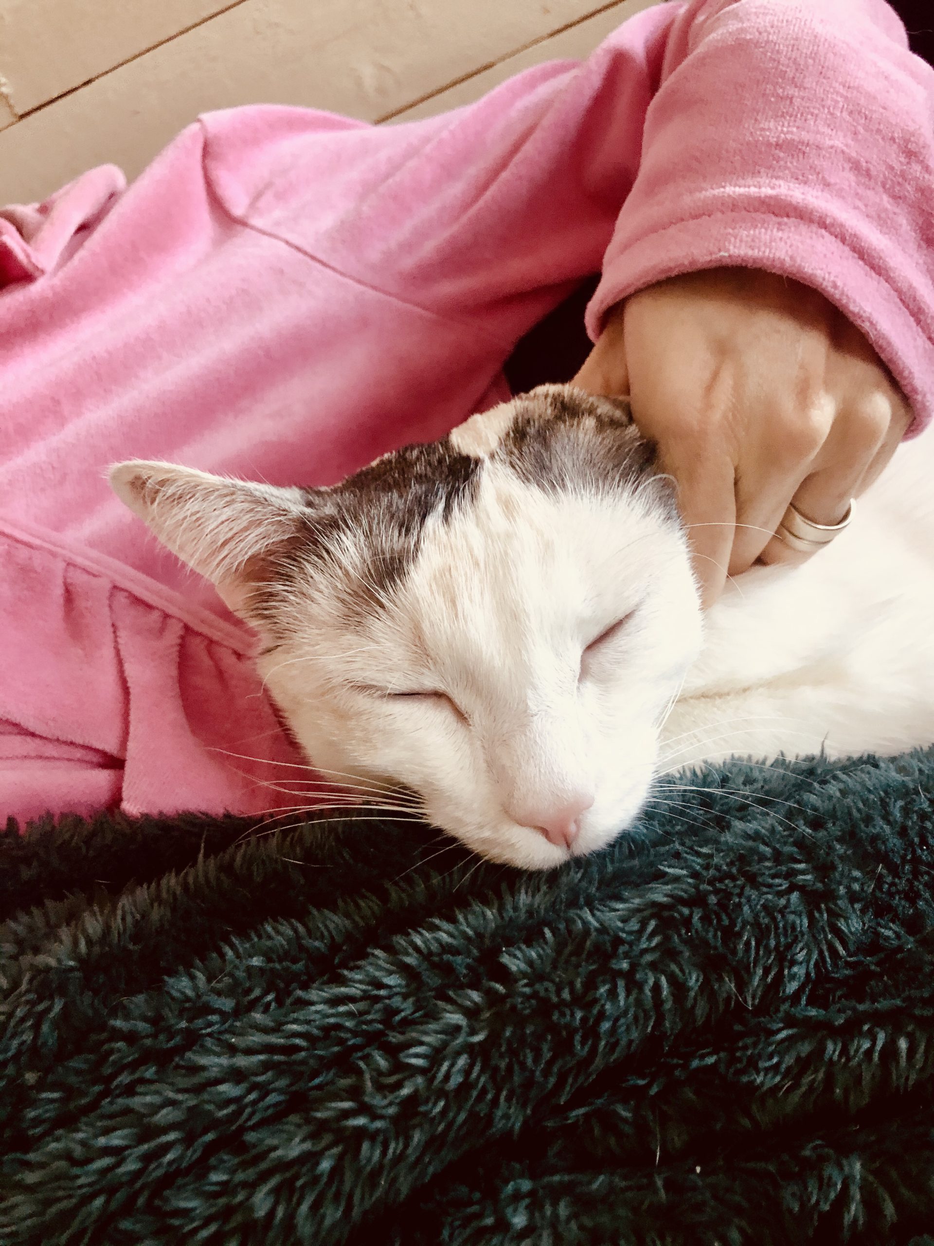 Här har jag starat dagen med mys med hårbollen. Hon är mer än nöjd när hon får lite kärlek och få ligga nära. Helst på mig.