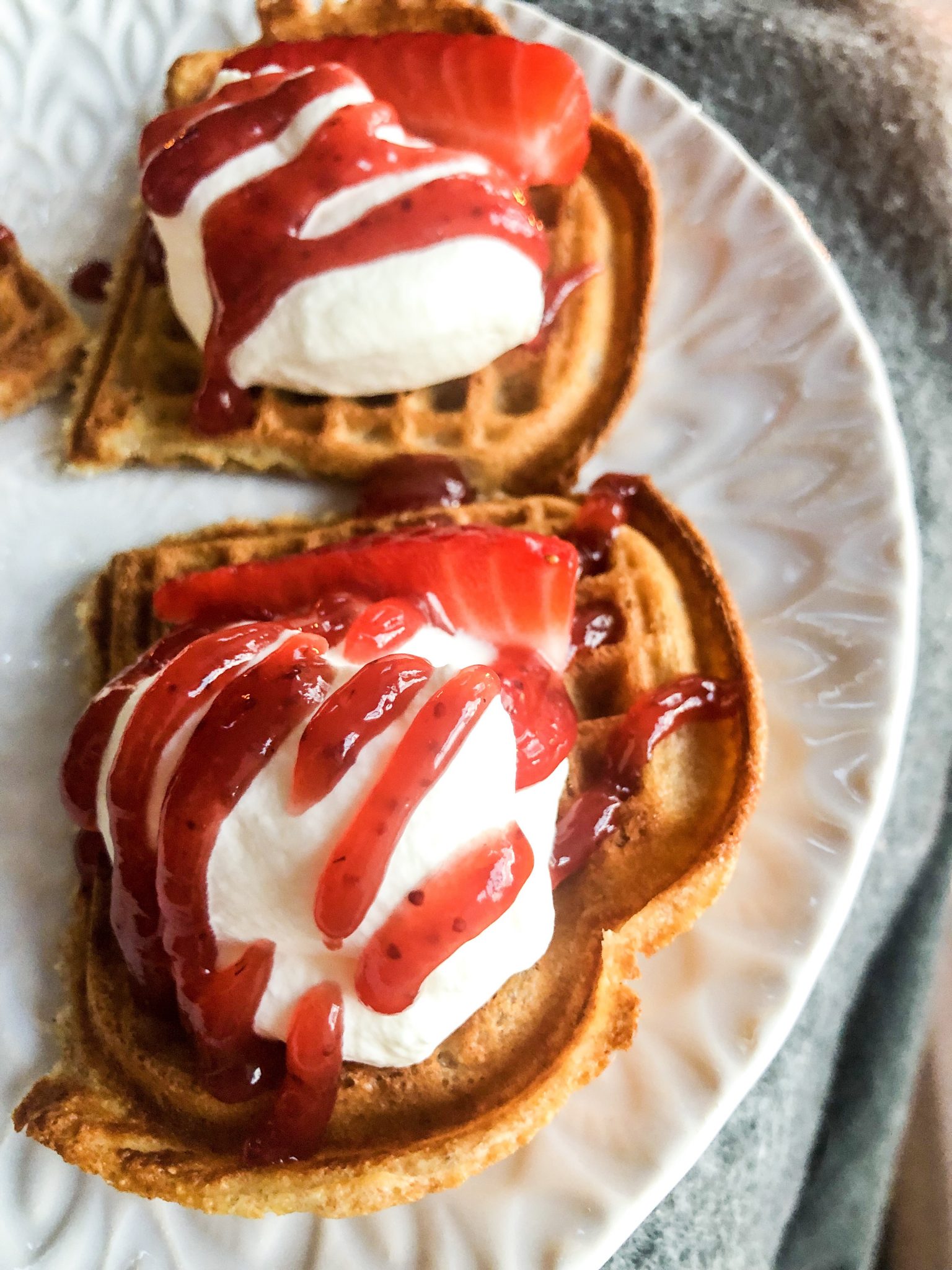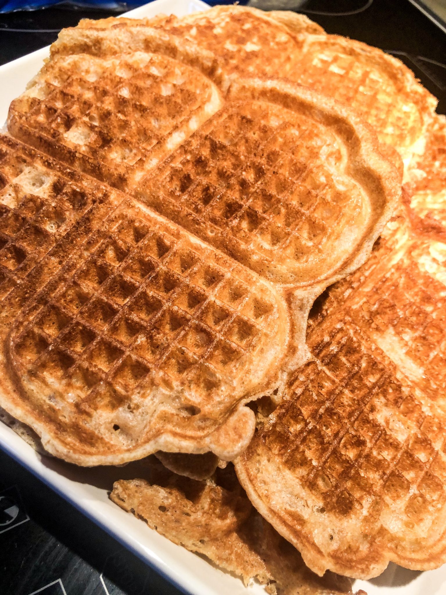 Jag gräddade dinkelvåfflor på ett recept jag hittade. Blev grymt bra! Förberedde både för matiga våfflor och de göttiga. De matiga med rökt lax, löjrom, creme fraiche och salladslök var så inibängens goda! Efterrättsvåfflor, ja men det är ju ALLTID gott!