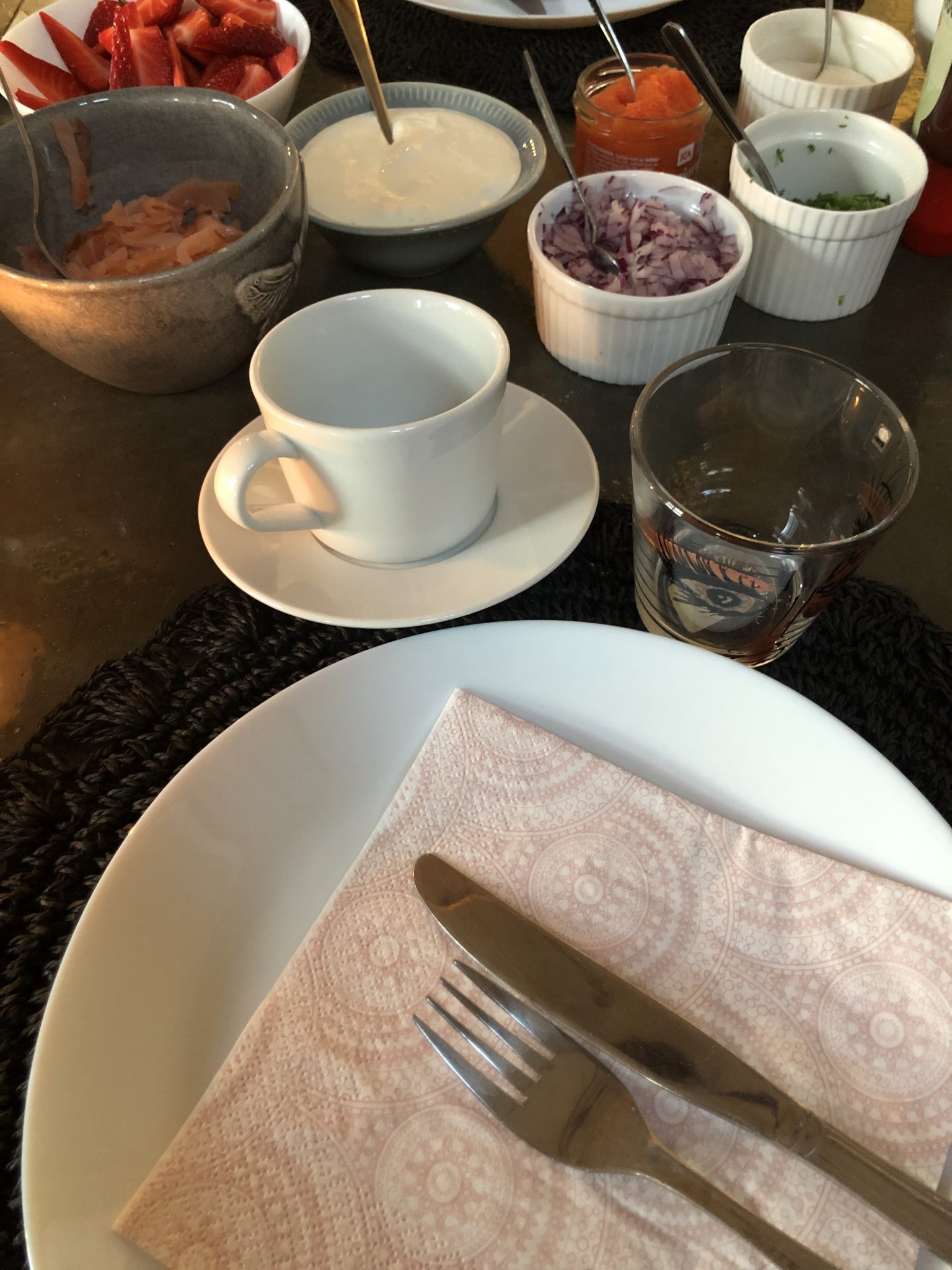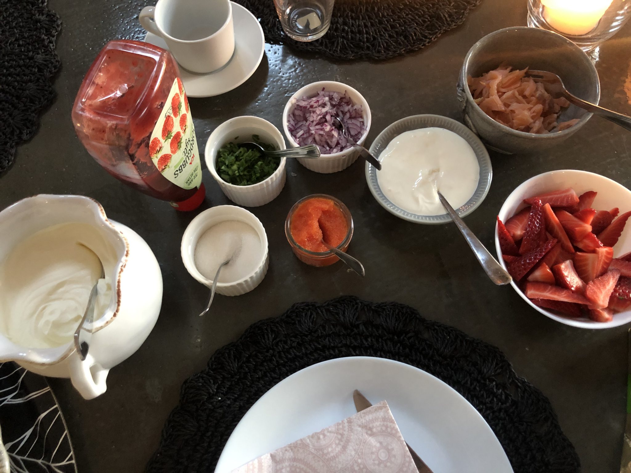 I eftermiddags började jag förbereda för våffelkväll. Tony tjoffade upp tillbehören och kolla in skålarna? Allt fördelat i skålar, ok….lite olika och lite omaka men alltså vad vi har avancerat från när han endast ställde fram plåtburkar och plastburkarna som man köper dem i affären.