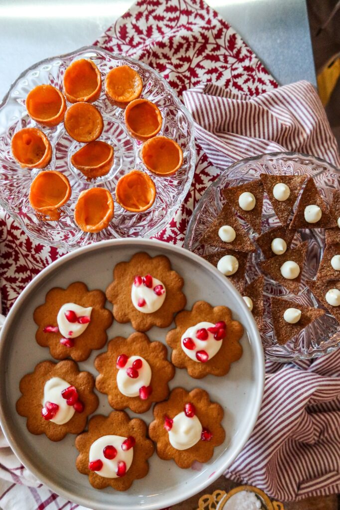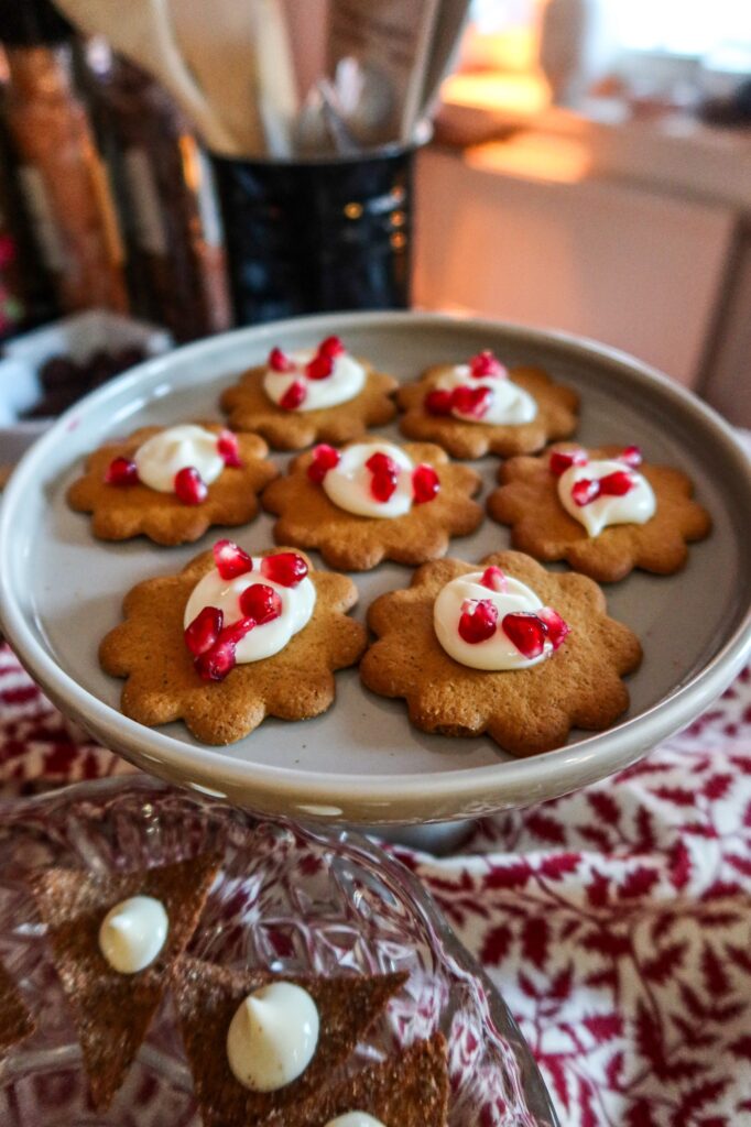 Pepparkakor med brynt smör ost och granatäpple. Denna kombon är magisk, så gott så gott! Pepparkakorna med apelsinsmaken var wow.