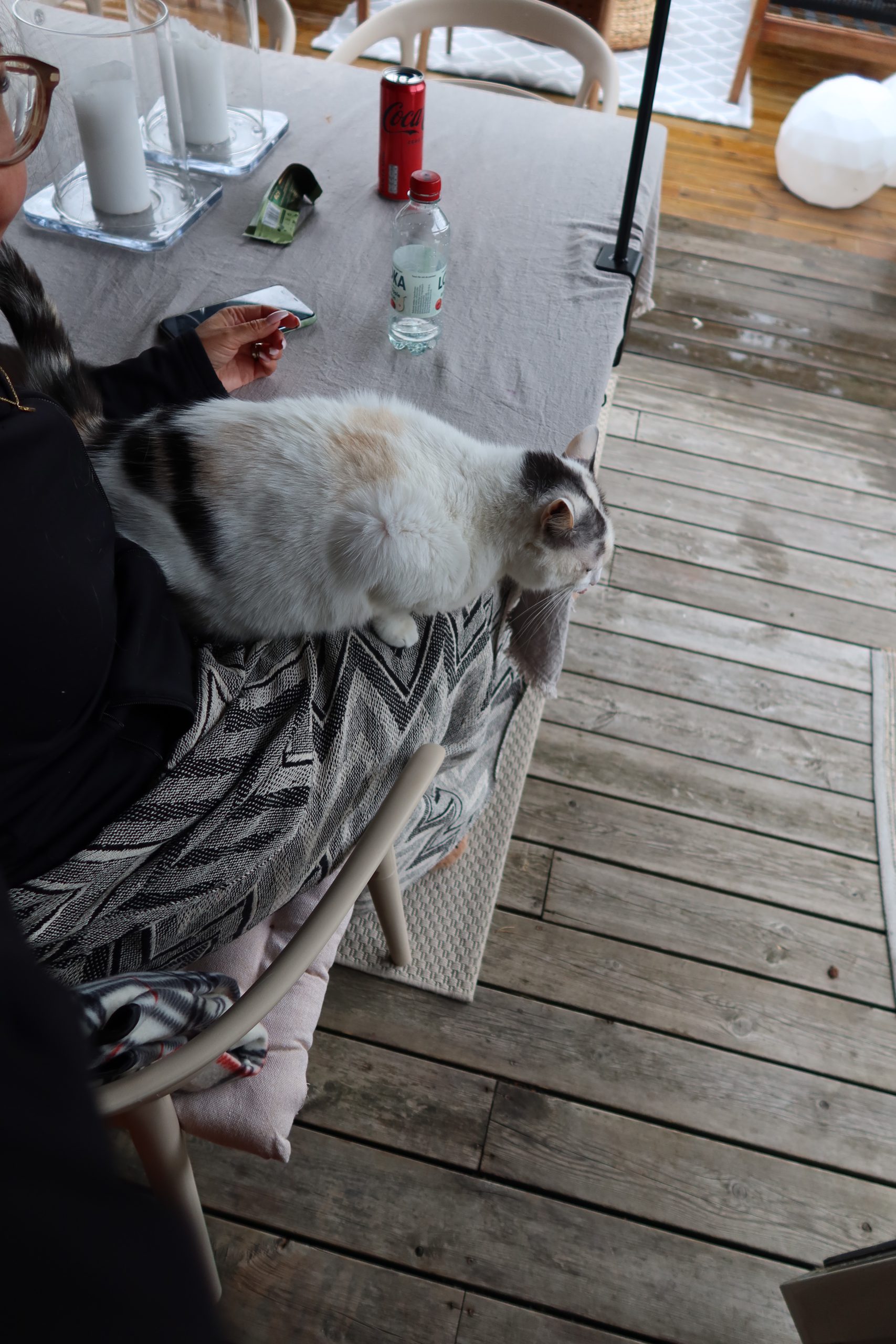 Så nu har hon varit ute lite på altanen i ett par dagar. Det har gått fint. Hon svävar inte ut nämnvärt men det spelar ju ingen roll. Att hon bara susar runt här där vi är, är ju såna framsteg så det är inte klokt. Hon är också chippad sen hon bodde på ”Hitta Katten” så den biten är kirrad.