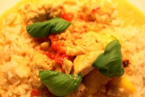 Exotisk kycklinggratäng med sting. Den här kycklingrätten är verkligen supersmaskig. Det är lite sting i den samtidigt som den är sådär härligt krämig och god. Du måste testa! Du kommer garanterat att tillaga denna exotiska kycklinggratäng fler gånger, det gör vi. Vi äter den med ris, men du kan äta den med pasta också, eller varför inte pressad potatis. Så krämig och god, de exotiska smakerna sätter verkligen lite härlig känsla på den här rätten. Testa denna kycklinggratäng vetja! Mums!