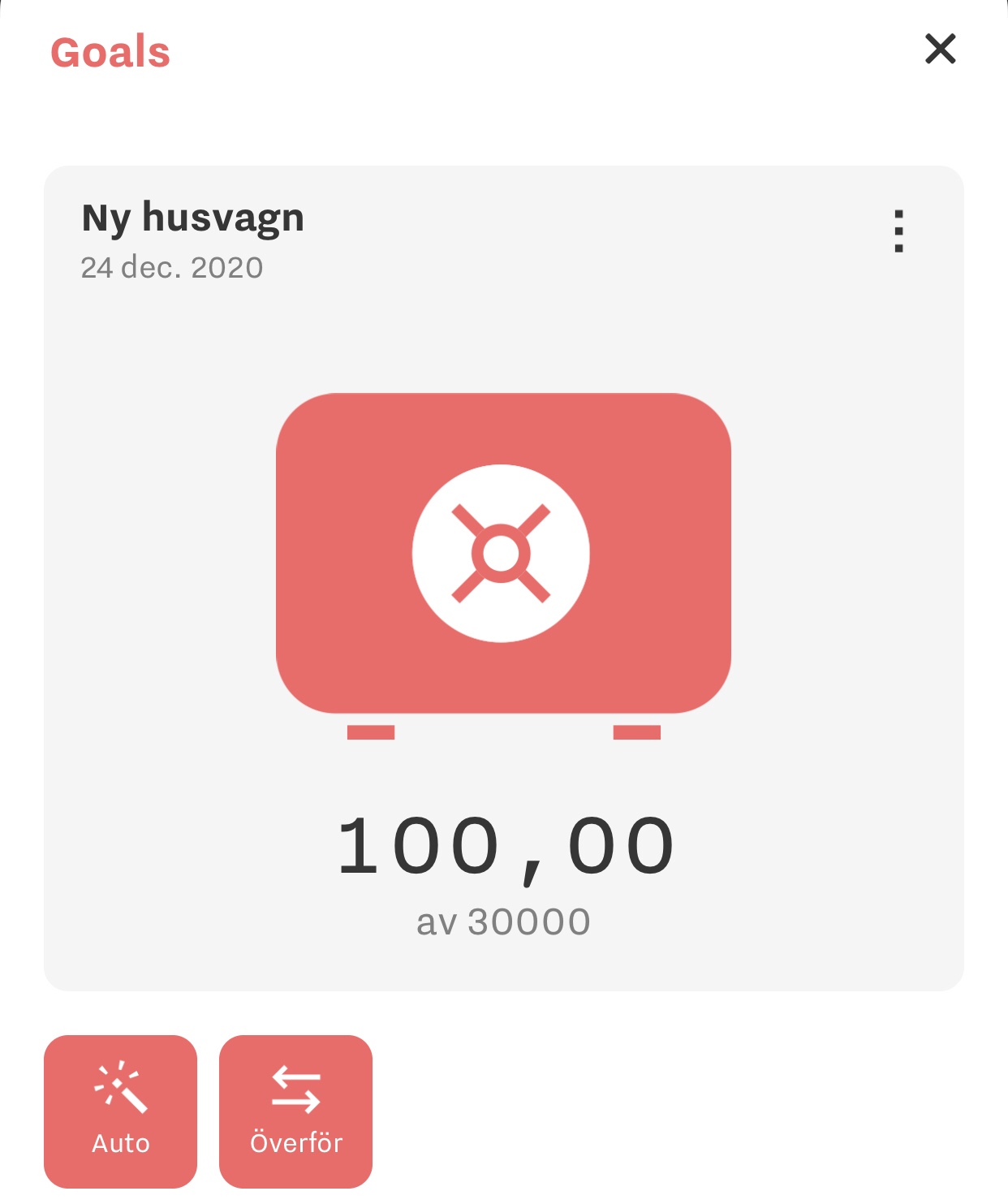 Nästa grej som bara är så bäst är att jag kan spara i appen. Jag har just börjat spara till en ny husvagn. Alltså ni känner ju mig, ingen tipp-topp snygg och ny utan nu vill jag ha en ny Vagnhild som ska rustas och fixas. Dock en större denna gången. Jag vill spara 30.000 kr och vill vara klar till jul, kan ju vara så att jag är klar tidigare men jul är liksom sista dagen.