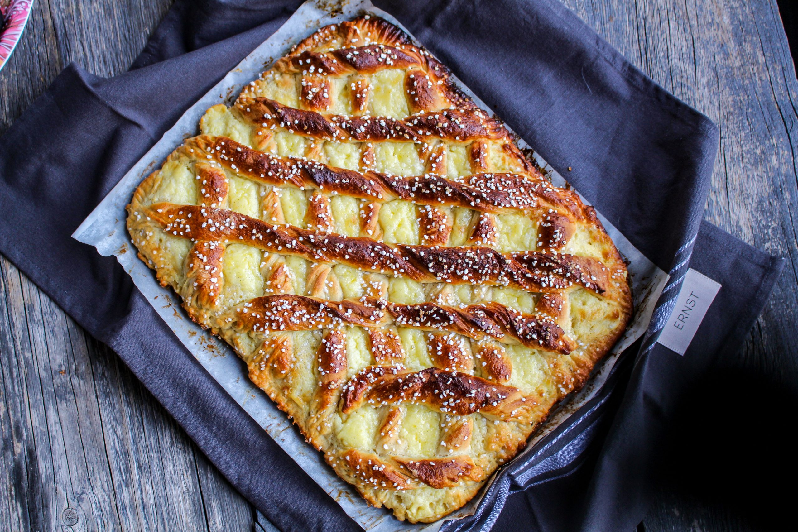 Igår bakade jag lite. Får lite craving på bakning med jämna mellanrum och då är det bara att lyssna på suget och ge efter. Igår ville jag göra något med vetedeg som jag aldrig gjort förr och det blev det. Falska wienerbröd tänker du, vad sjutton gubbar. Nej men det är så enkelt som att det är som wienerbröd men de är bakade i långpanna och på vanlig vetedeg, inte på smördeg. Jag är så nöjd med hur den här falska wieneberbrödet blev. Krämig och god men ändå som en bulle fluffig och härlig. Precis som vanliga wienerbröd så smakar de himmelskt och smälter i munnen. Denna bara måste du testa att baka när du får tillfälle.