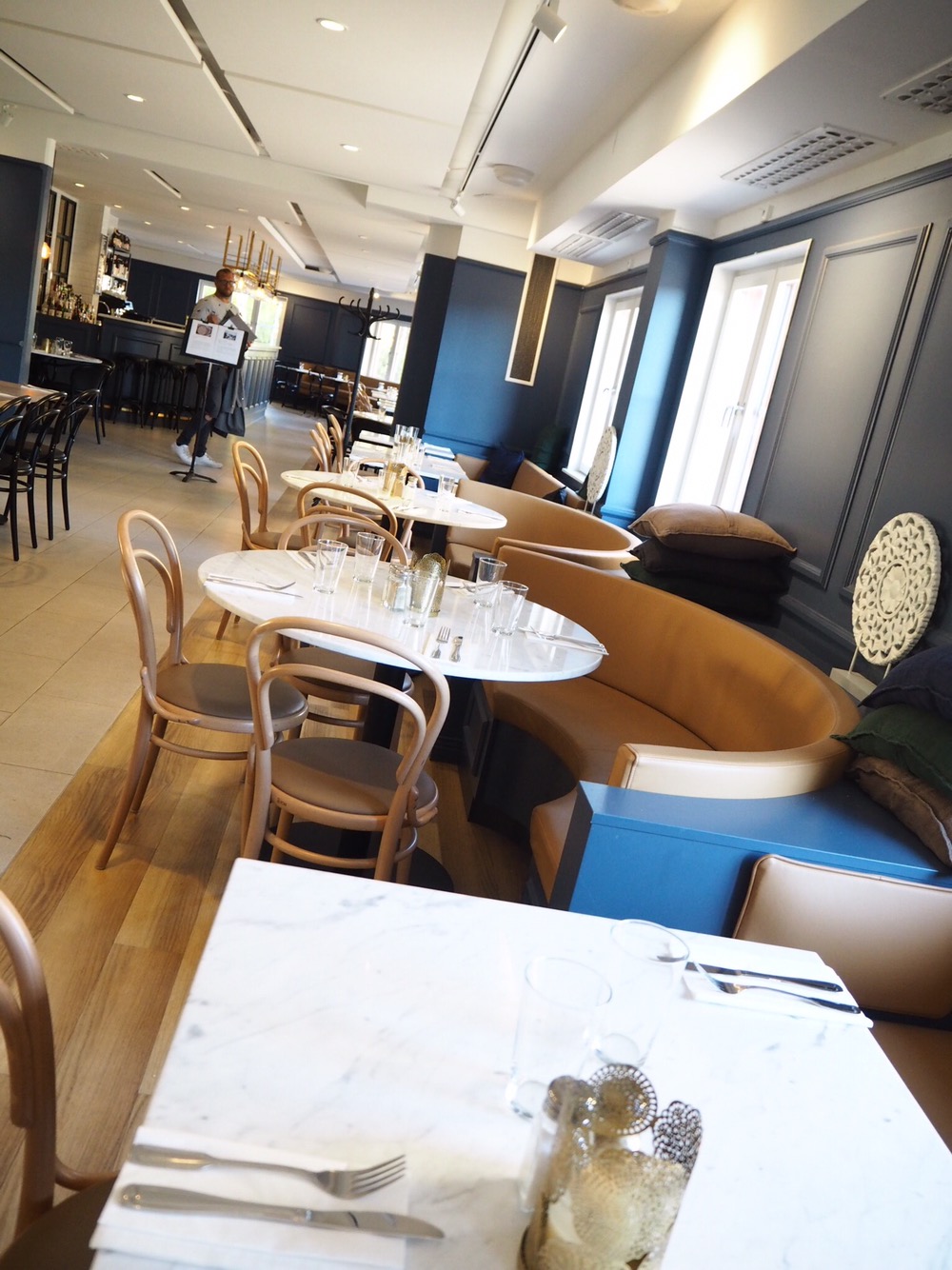 Det är både inbjudande och stilrent snyggt. Är så imponerad över hur annorlunda det kan se ut idag fast det är samma lokaler. Fantastiskt!
