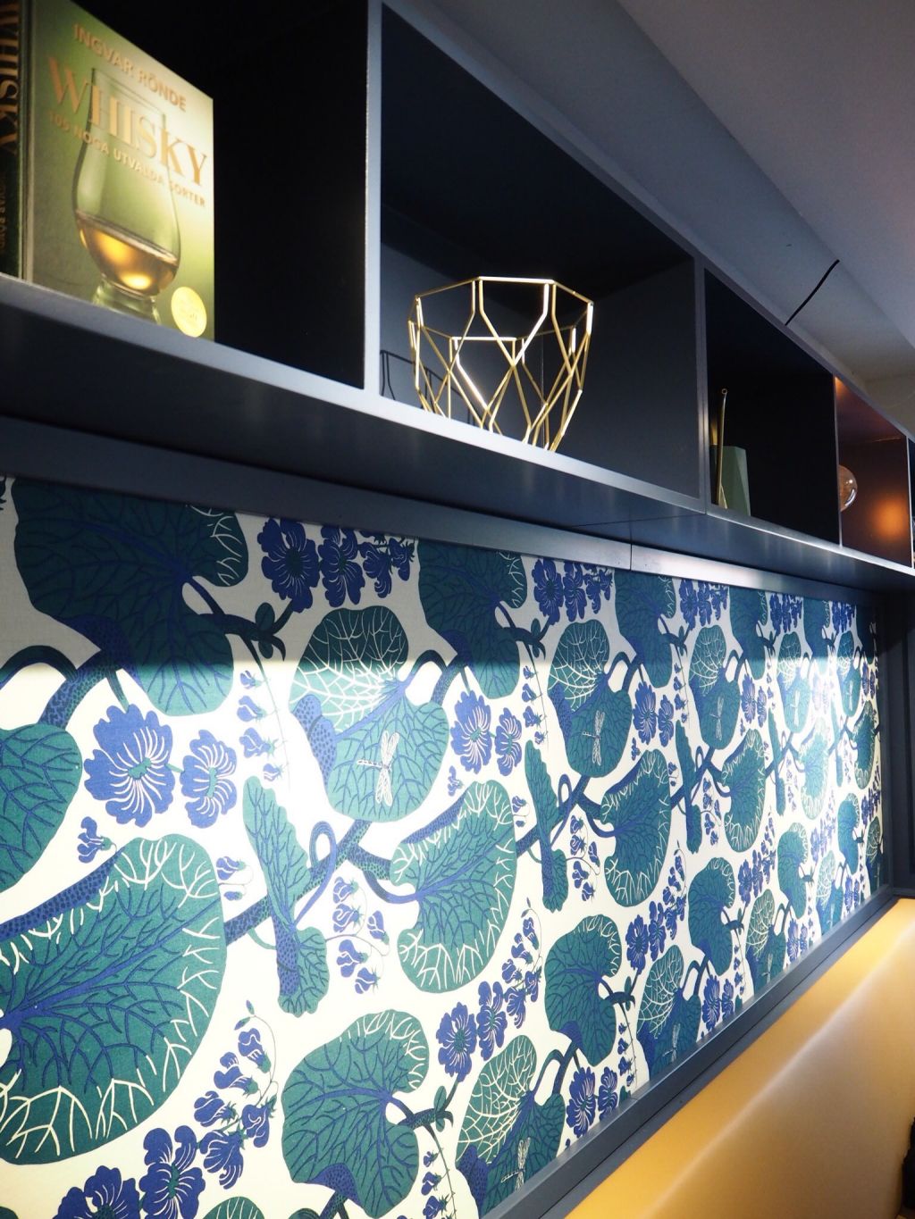 Detta murriga rum med sina blåa väggar smakfullt kombinerade med grönt, senapsgult och guld. Sen blandningen med naturella träslag till…. Sååå snyggt! Jag har förhoppningar om att kunna köra ett event där inom kort. Ska prata med chefen där och se vad hon tycker?