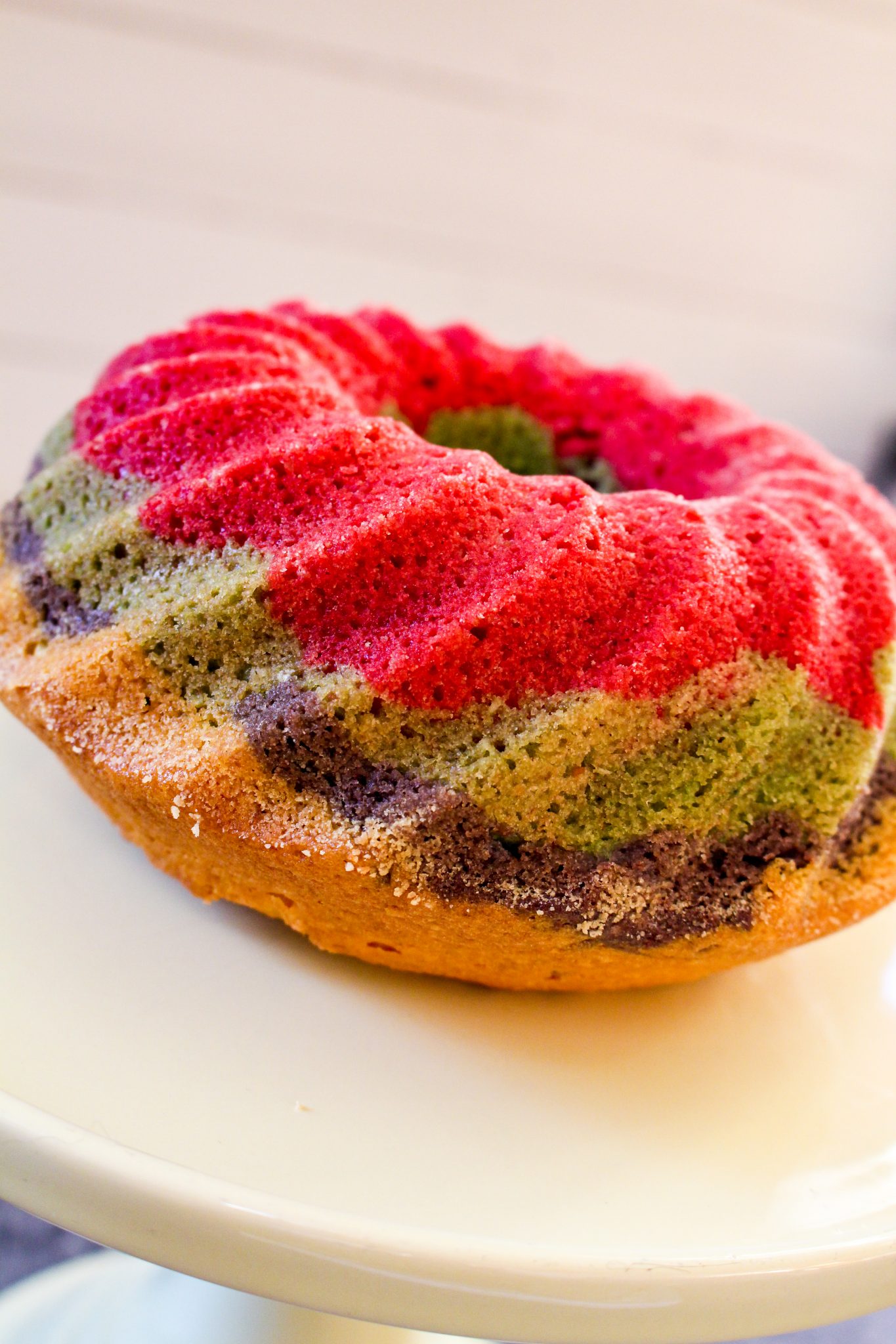 Som sagt, det var kul med färgerna så jag har också hunnit med en vanlig hederlig sockerkaka som jag bakade i olika lager. Det var bara att att dela upp smeten i 4 olika skålar, droppa i lite färg i varje, blanda runt och sen hälla i det i olika lager i sockerkaksformen. Å titta så kul det blev? Inte varje dag man får äta sockerkaka i såhär skarpa regnbågsfärger, man blev ju glad på riktigt!