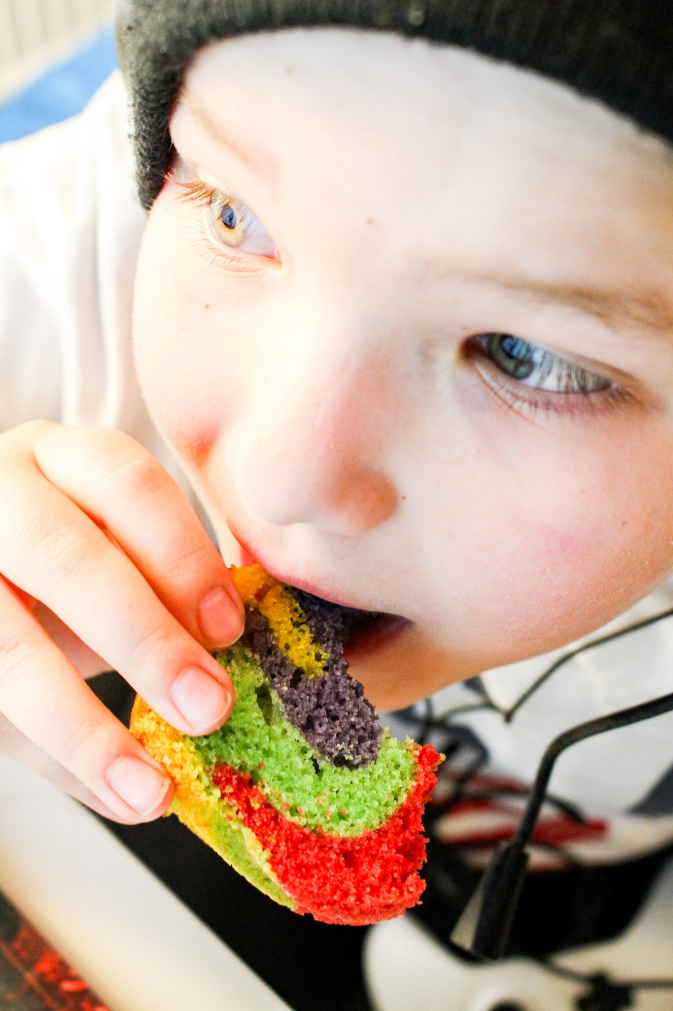 Snacka om att vi haft kul med de här färgerna. Milo har fått äta både färgglada amerikanska pannkakor och en smäktande härlig tårta. Jag passade på att göra tårtan åt oss till efterrätt i Söndags, jag trodde Milo skulle svimma av lycka. Tårta fast det inte var kalas, han var överlycklig. Dessutom på en Söndag.