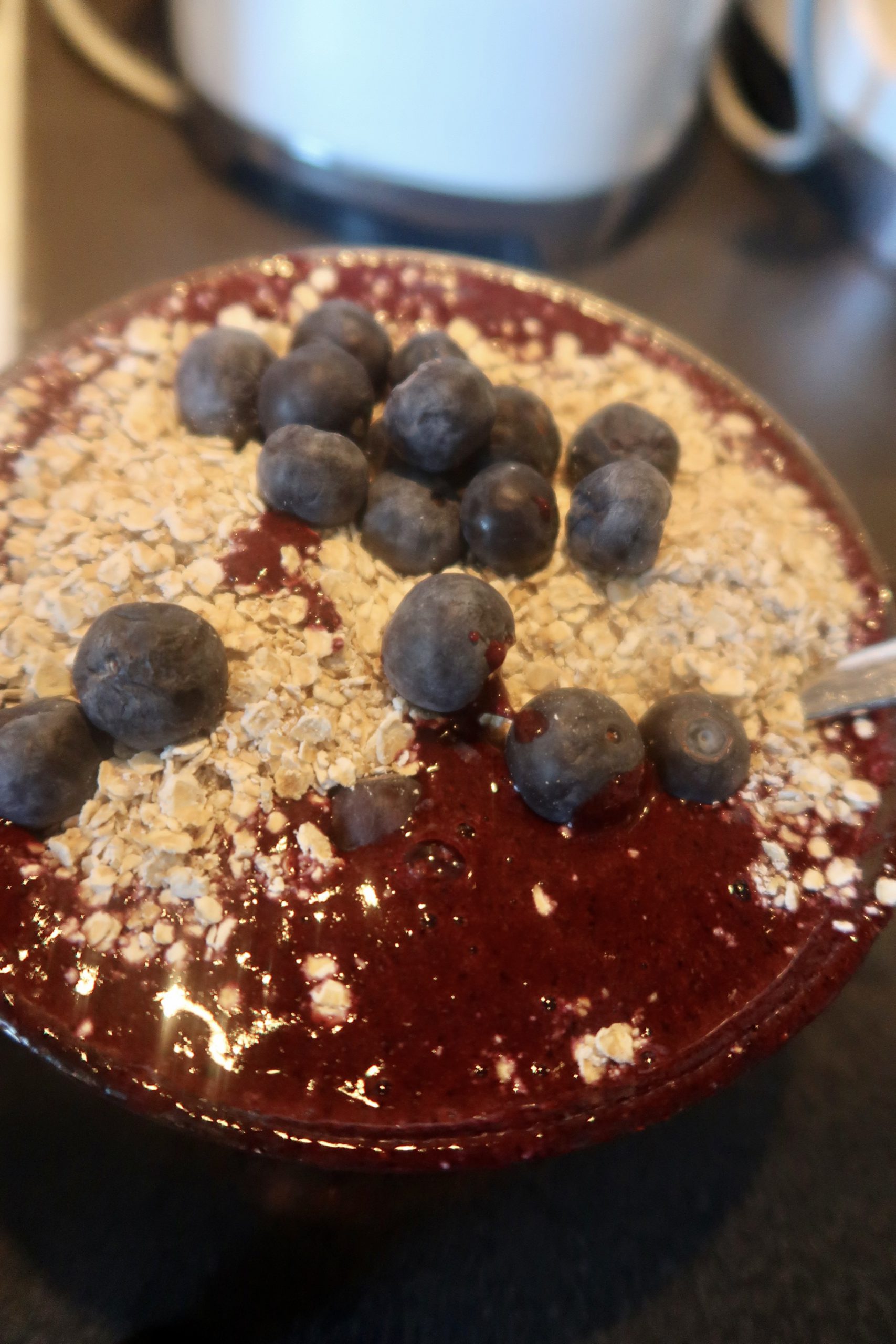 Åt just frukost här. Det blev det famla vanliga. Min smoothie som jag äter med glutenfria havregryn och blåbär. Så gott!