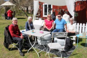 Här satt de och fikade en lång stund. Jag kunde t.o.m gå ut och sätta mig med dem en stund. De gjorde också ett besök i plantskolan. Så mysigt att få ha dem på besök. ♥