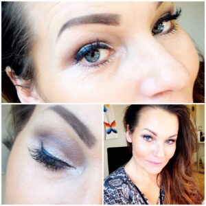 3) Tona ihop skuggorna ordentligt med penseln. De ska liksom ”gifta sig med varandra”. Tona tona tona i timmar som min sminklärare Olle sa jämt. Tona ihop tills att de båda skuggorna går fint in i varandra och inte ger några skarpa kanter.