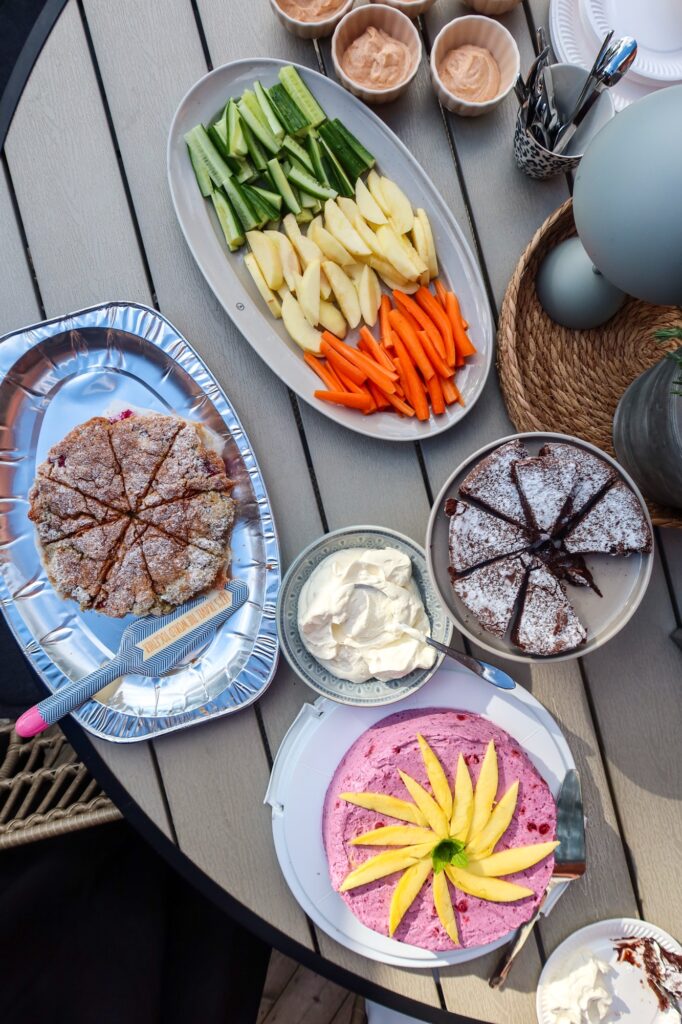 Igår hade jag min familj här på födelsedagsfirande. Det blev lite tilltugg och fika, mamma & pappa och syrran med hela sin familj. Så mysigt. Jag gjorde massa gott….. små minipizzor, grönsaksdipp med hemmagjord Holiday dipp (kommer recept på det senare idag), blåbärstårta, hallonkaka och vanlig kladdkaka med grädde. Minipizzorna gjorde succé! Kommer recept på allt detta framöver.