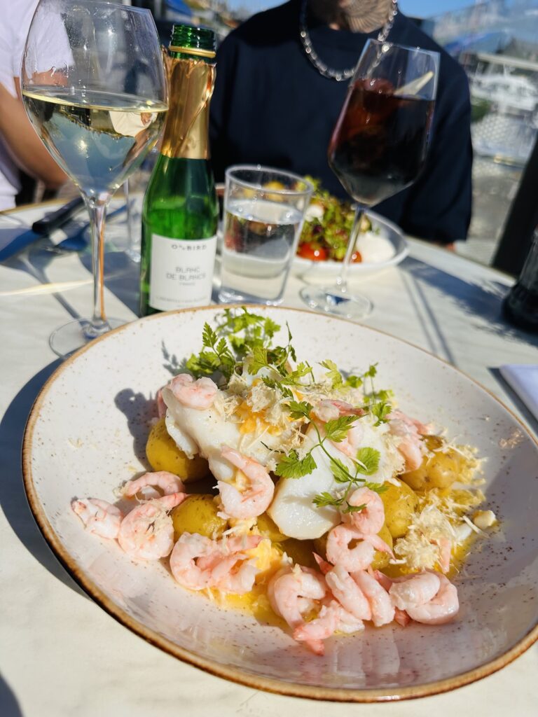 En av mina absoluta favoritplatser är Glashuset så jag blev väldigt glad över att vi skulle äta födelsedagslunch där. Ligger precis vid vattnet, så härlig atmosfär och jag skulle kunna sitta där en hel dag och bara glo på folk. Testa förresten deras burrata – den badar i en så härlig ”dressing” med balsamico och basilika, spröda levainkrutonger som är som ett smul, så goda cocktailtomater – alltså världsagod. Tony hade tydligen sagt att jag fyllde år så vi fick en flagga och jag blev bjuden på ett glas alkoholfritt bubbel. Så fint!