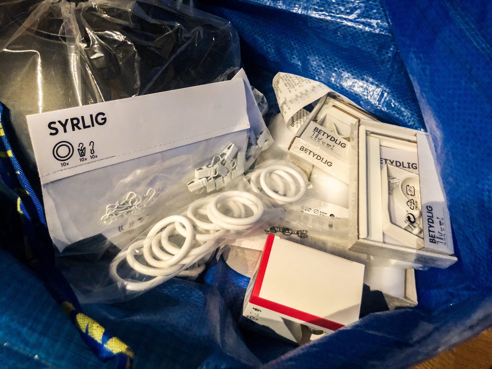 Nu ska jag beställa gardinerna som ska sitta i hallen. Tror att det blir gråa sammetsgardiner som är extra långa. Köpte såna stora ringar så att det ska vara enkelt att dra isär gardinerna när man ska ha något där bakom.