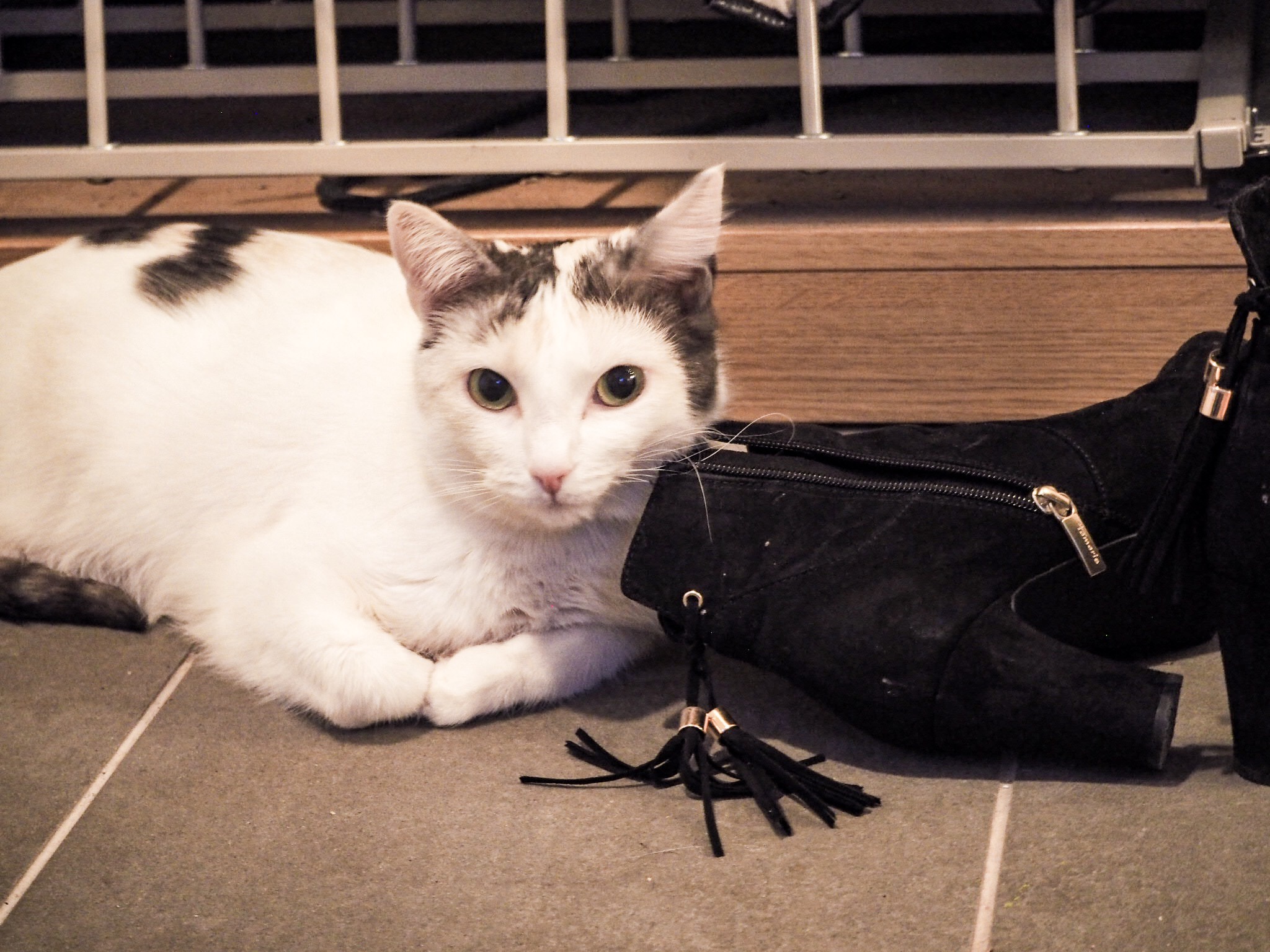 Någon som myser på golvvärmen bredvid ”mammas” skor.