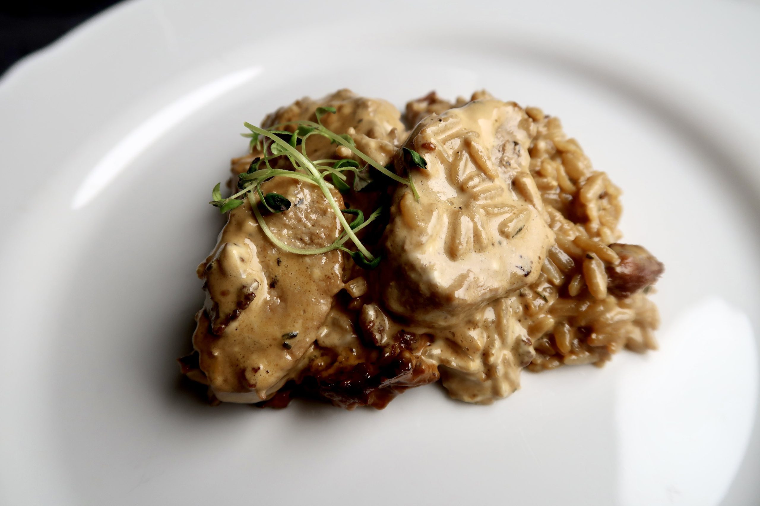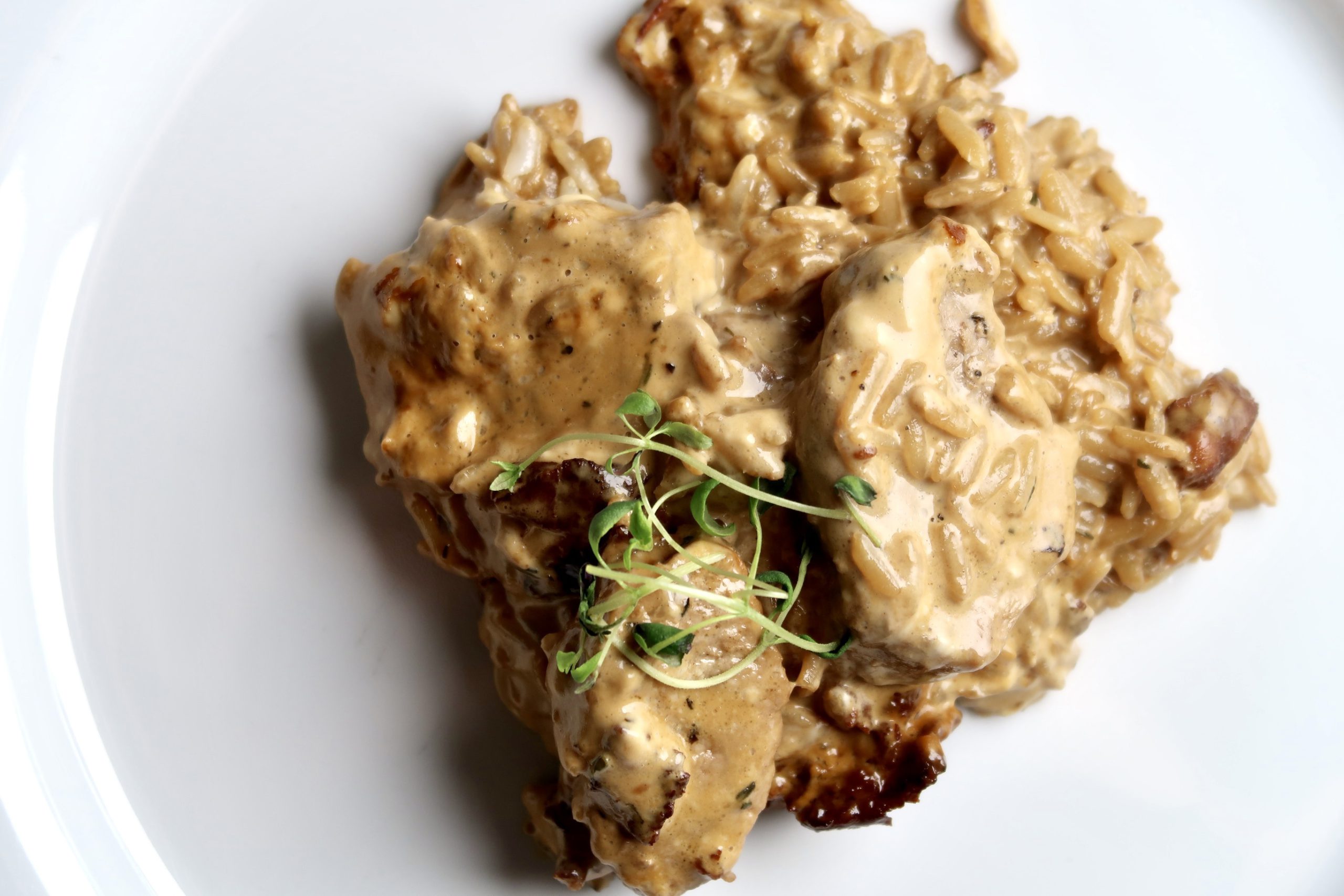 Den här rätten kan du absolut också laga med fläskytterfilé och kycklingfile också. Minst lika gott. Såsen är maaaagisk, och så gott till ett glas rött om man nu föredrar det. Det är inte bränt uppepå, bara baconbitarna som fått lite extra färg.