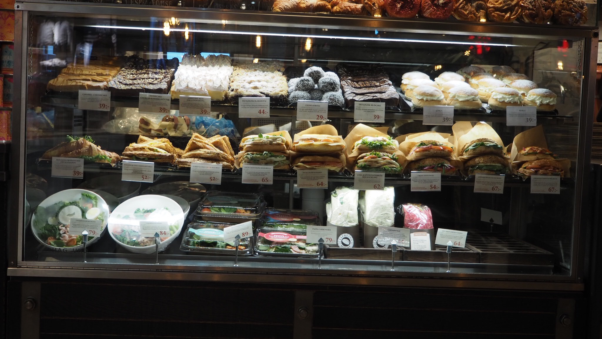 Alldeles för mycket att välja ifrån. Dessa eviga beslut i livet. Själv var jag ”duktig” och bara tog en kaffe. En koffeinfri. Varje gång de svarar att de har det koffeinfria kaffet slår jag en mental volt.