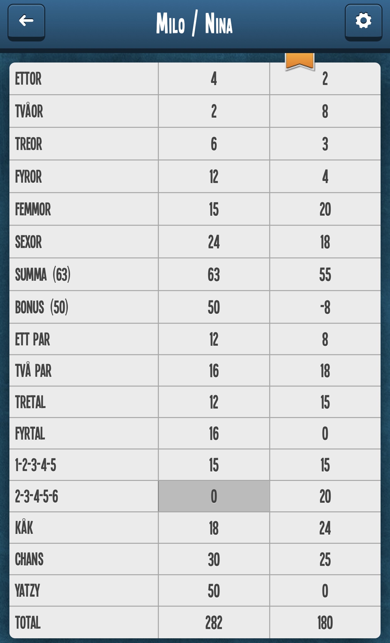 Jag har en Yatzyapp i telefonen som jag verkligen kan rekommendera. Den använder vi ofta och har såå kul när vi spelar.