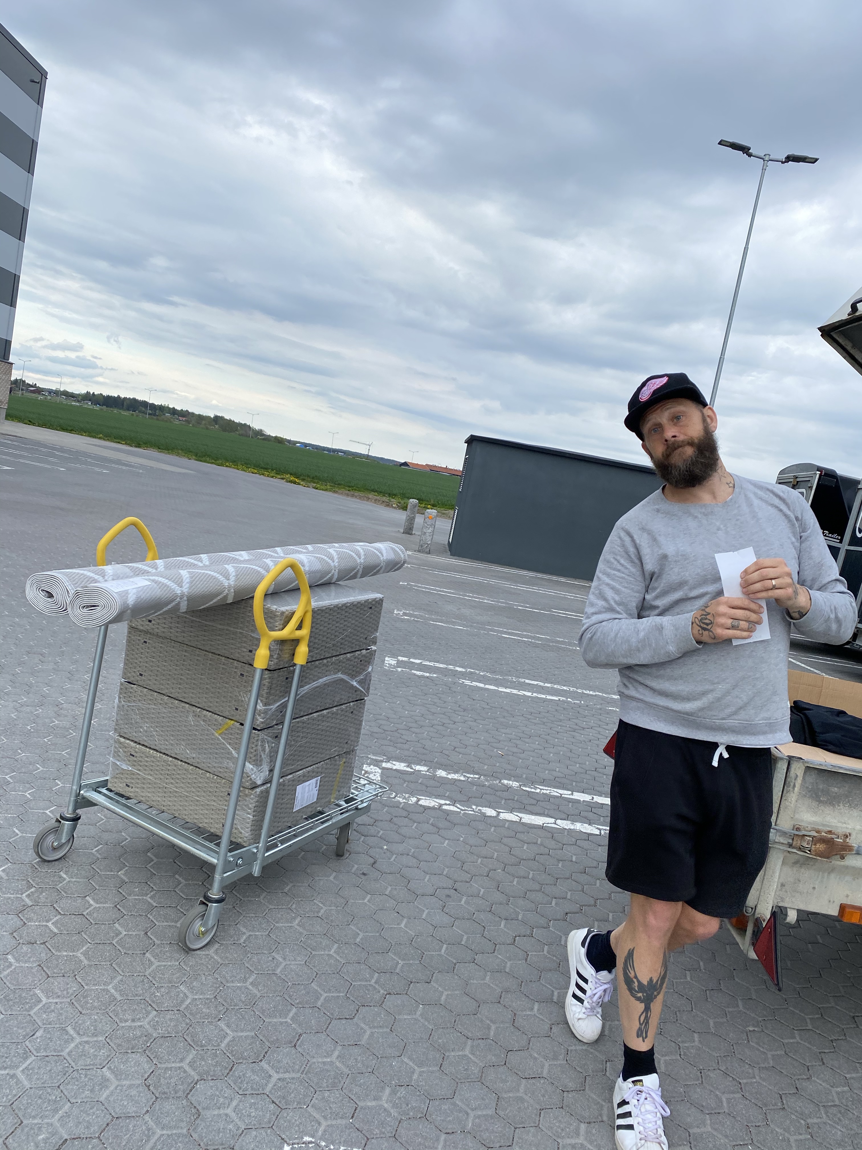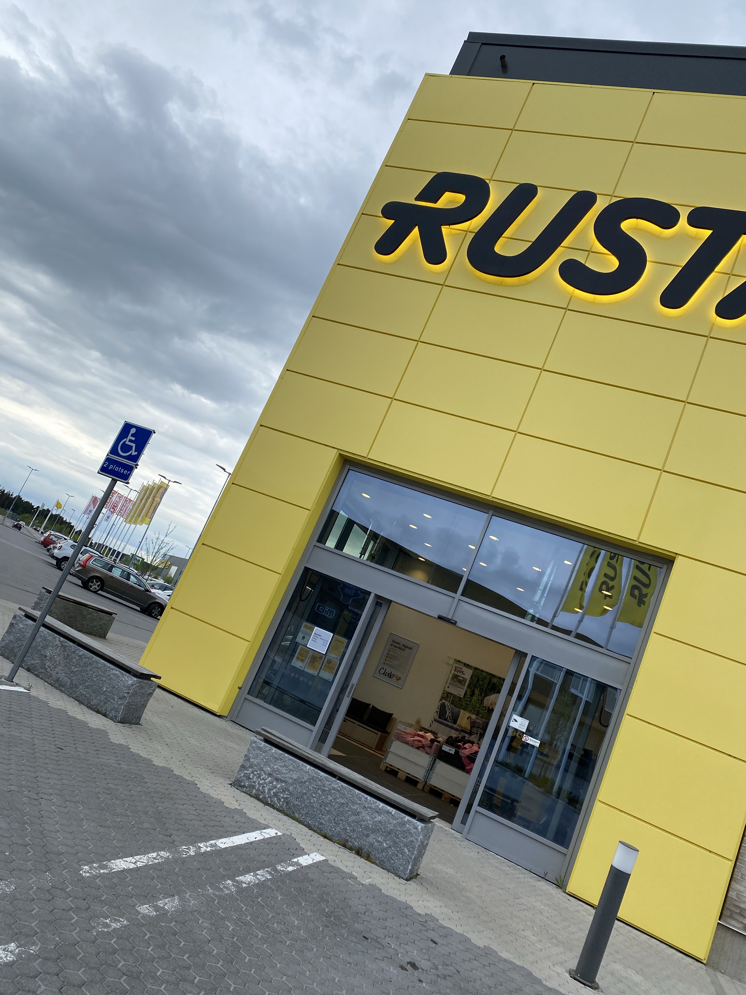 Glad i hågen på väg in på Rusta på vägen hem från Thedde igår! Som tur var så fick vi plats med lite loungemöbler i släpkärran.