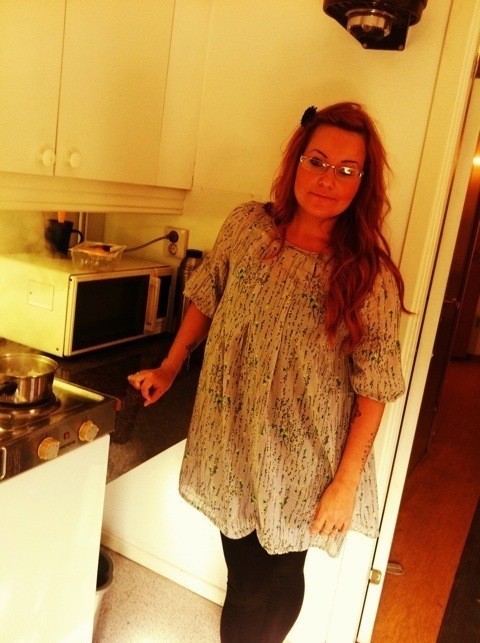 Precis när jag ätit klart så tappar jag burken med tonfisk i olja i och skvätter upp på min tunika. Jag som inte ska åka hem efter jobbet idag, ska ju kolla in min man som spelar sin första match idag. Innebandy, ja han har tagit upp det igen. Får se hur länge ryggen håller, mer om det i ett annat inlägg. Men är inte det typiskt att man spiller när man INTE ska! Hej VANISH!