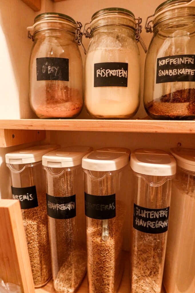 Såhär ser det som sagt ut just nu, som du ser behövs en liten uppfräschning med nya pennor och nya etiketter. Etiketterna kan jag dock bara torka av och skriva med ny penna, men jag behöver fler. Det finns mycket mer i det här skafferiet ska du veta. 😝