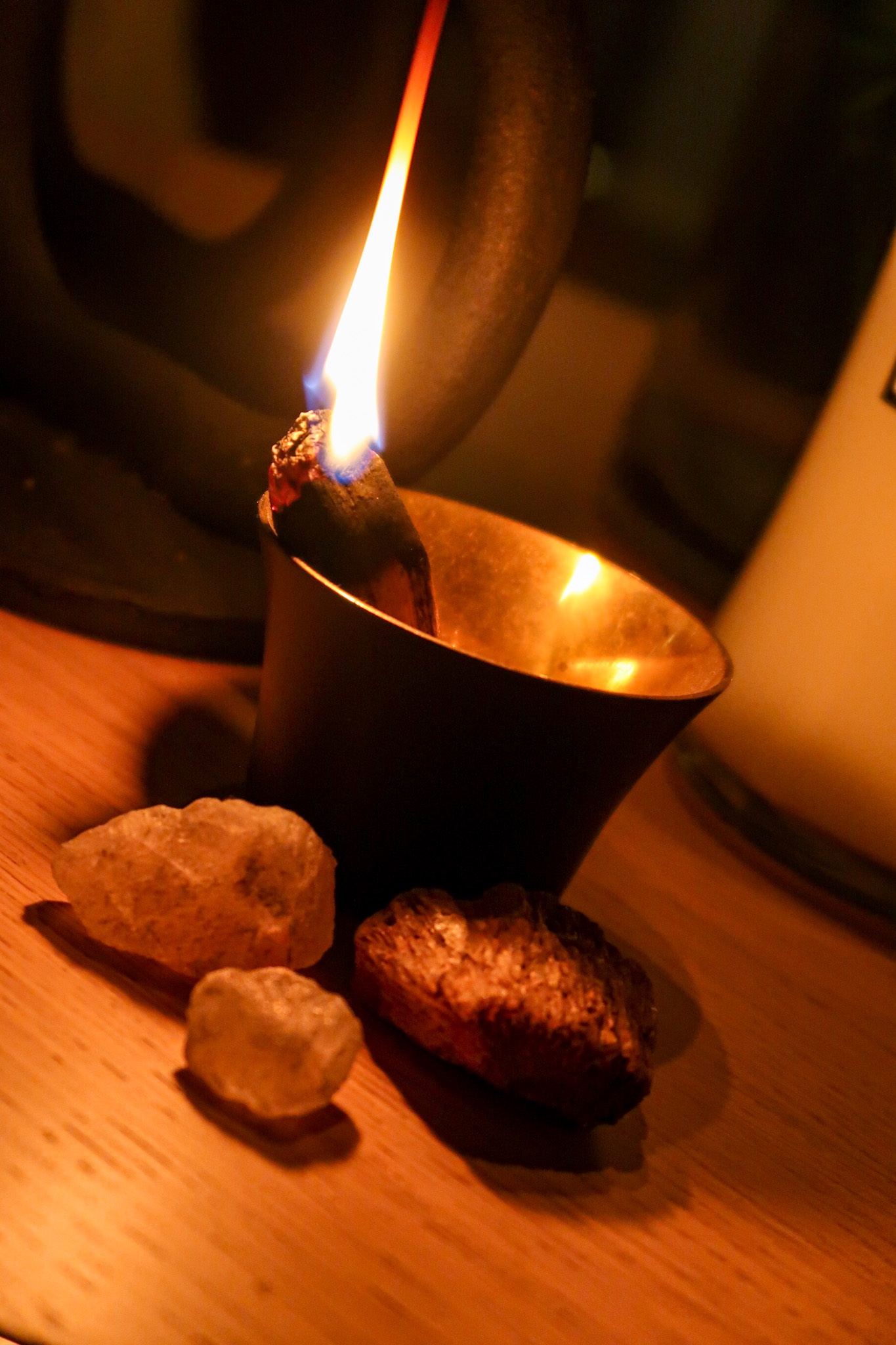 Efter sellerijuicen så satte jag mig ned för att meditera en stund. Fattar inte varför jag alltid kommer av mig med det, allra helst inte när det gör mig så fantastiskt gott. Jag får ett sånt lugn i hela själen och det känns som man blir lagad invändigt på något vis. Jag brukar också köra rökelse, Palo Santo heter den här rökelsen. En lugnande doft som också kallas för Holy Wood. Palo Santo har använts av Sydamerikas ursprungsbefolkning sedan urminnes tider. Renar själen från negativa energier, ett perfekt hjälpmedel vid t ex meditation. Det sägs ge ljus och lugnande energier till både dig och ditt hem.