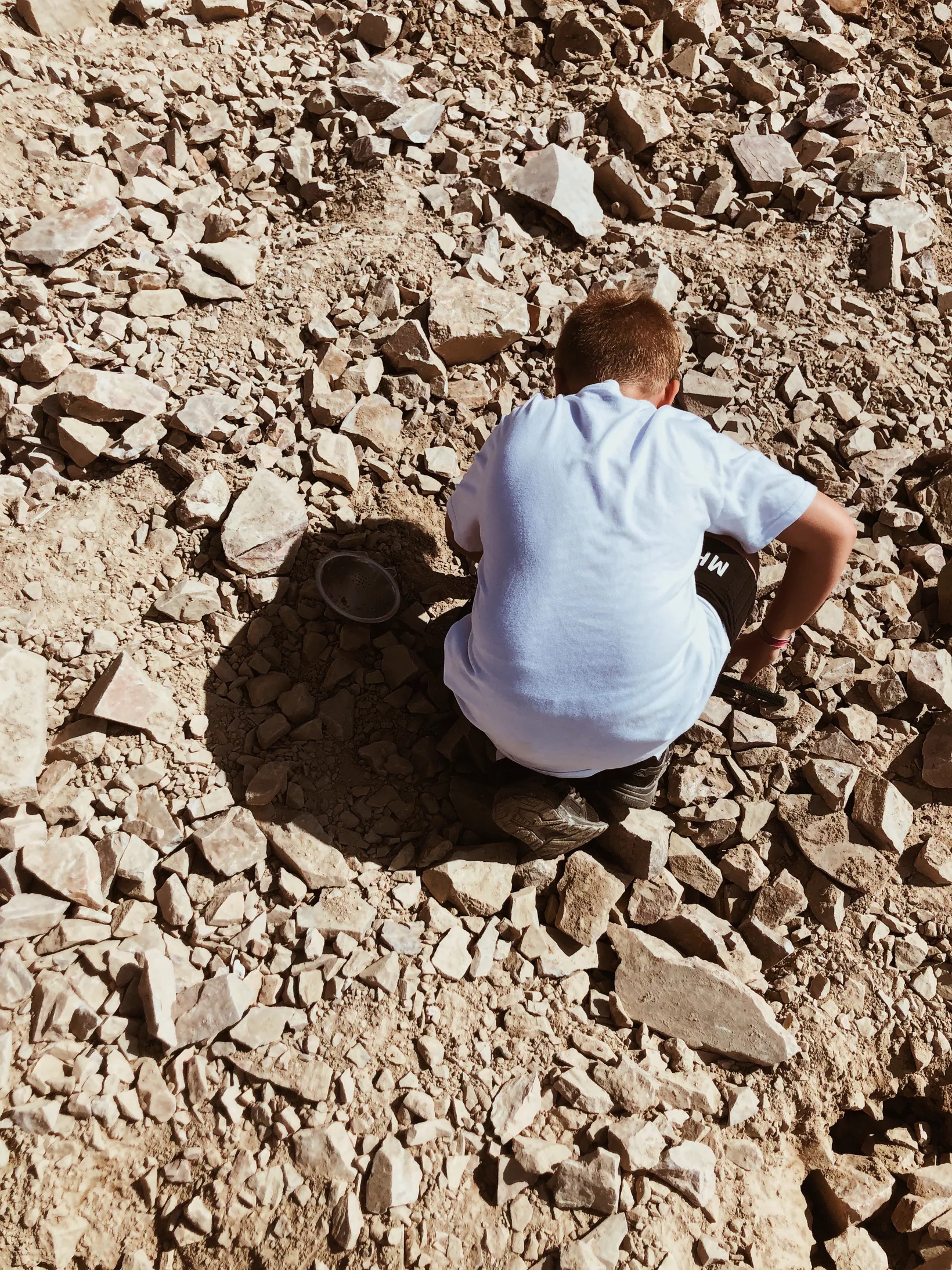 När vi väl kom upp så gick man ned igen. Med till gruvan där man med räfsa själv letade efter dessa ametister. Solen gassade, och det var så kul att se Milo slita som ett djur för att hitta dessa ametister.