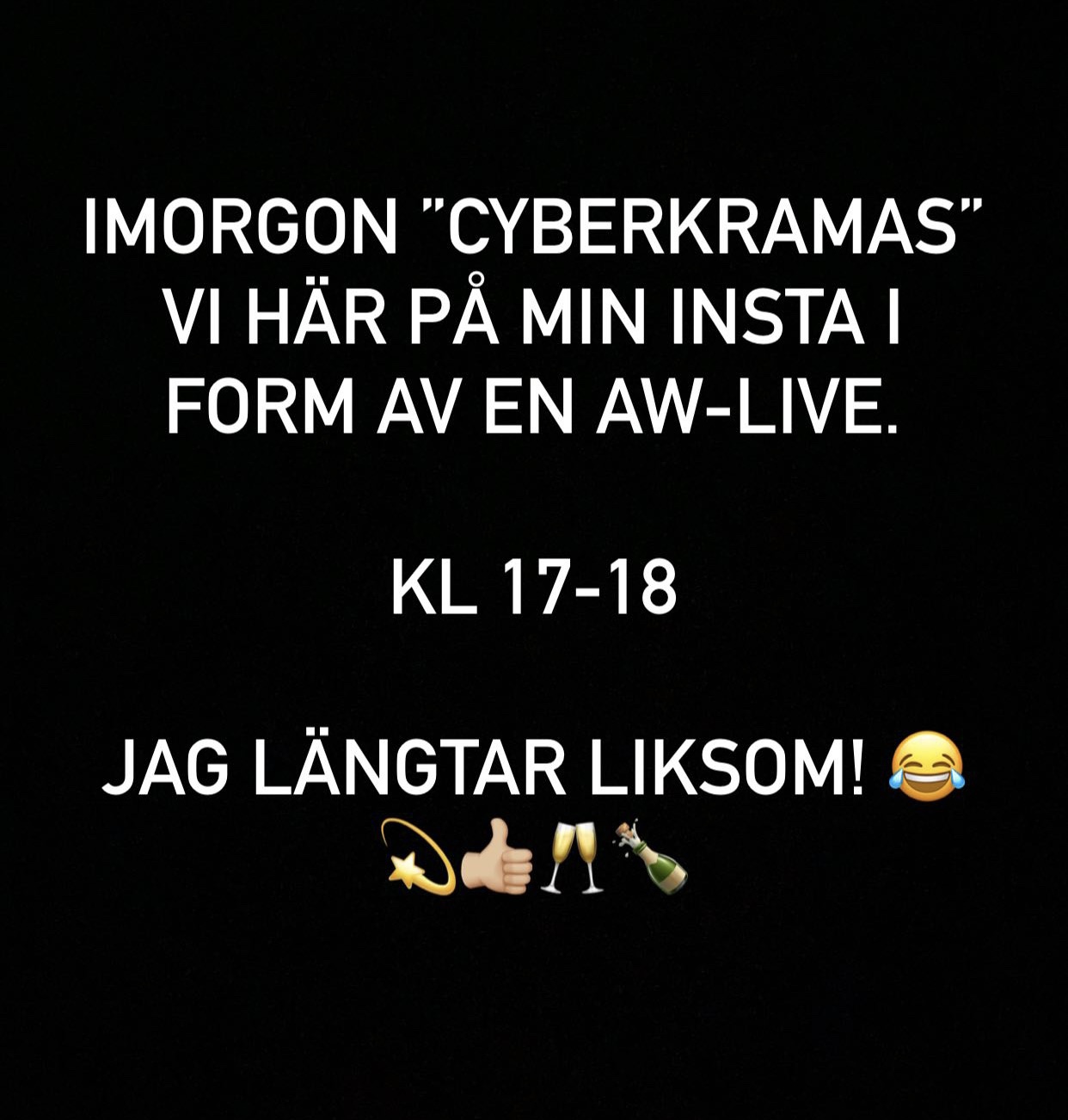 Hörni! Imorgon kör vi AW-live på min Instagram!