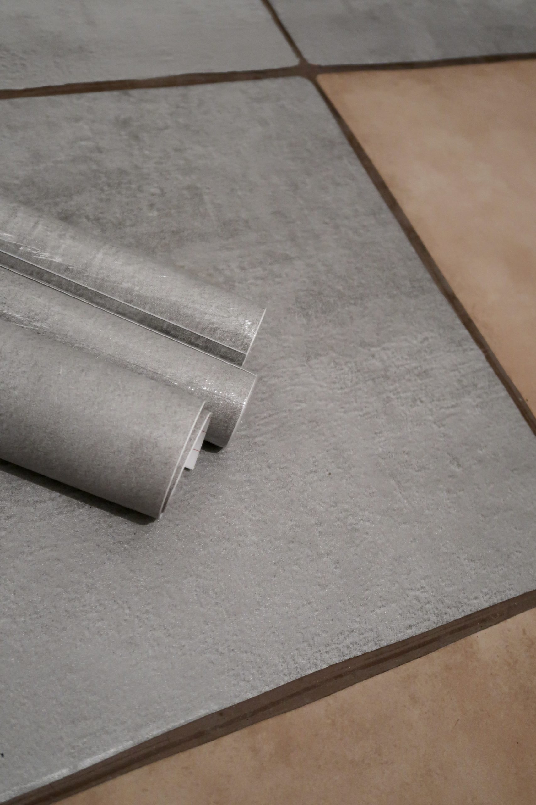 Jag har helt sonika köpt dekorplast. Ett tips är att köpa ett sånt som inte är halkigt. Detta har lite som en yta som gör att det inte alls är halkigt. Jag ville ha något som såg ut som betong och tyckte nog att det här från Bauhaus ser riktigt bra ut. Jag har varit jättenoga med att rengöra bra under, se till att det inte ligger några små stenar eller något under för då blir det lätt hål. Sen kommer jag lägga matta där man går så slitagen blir så liten som möjligt.