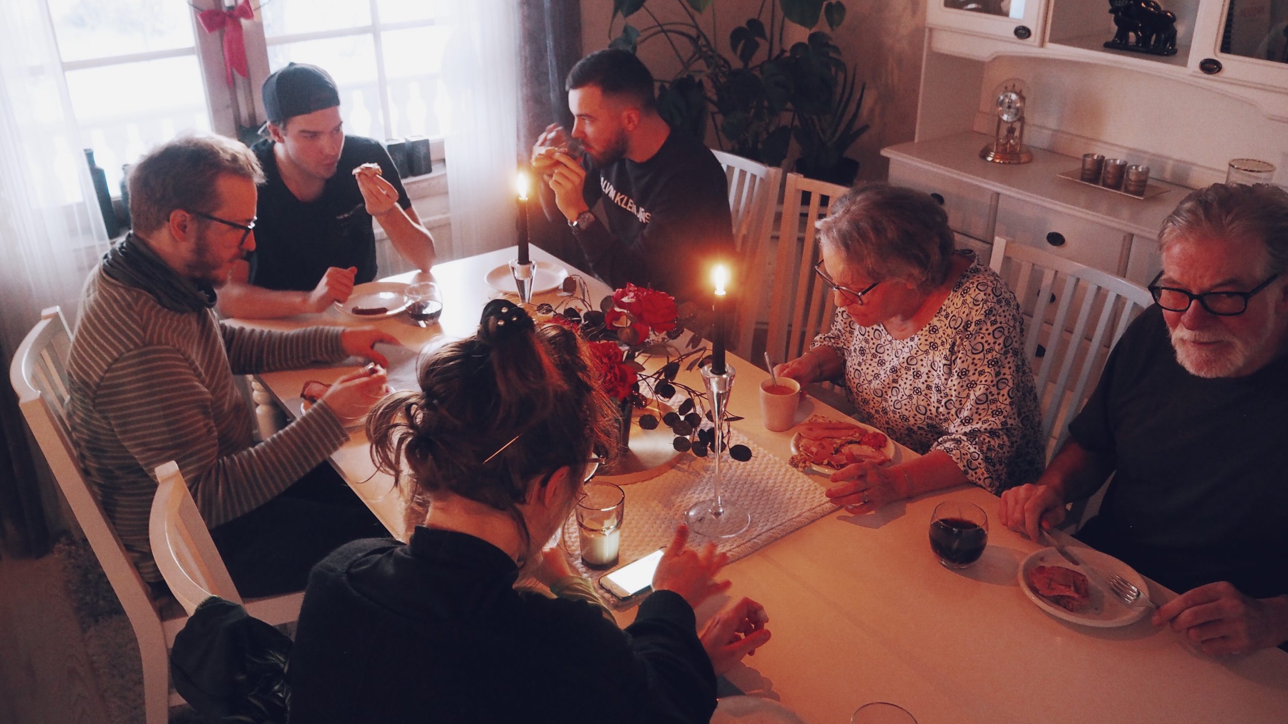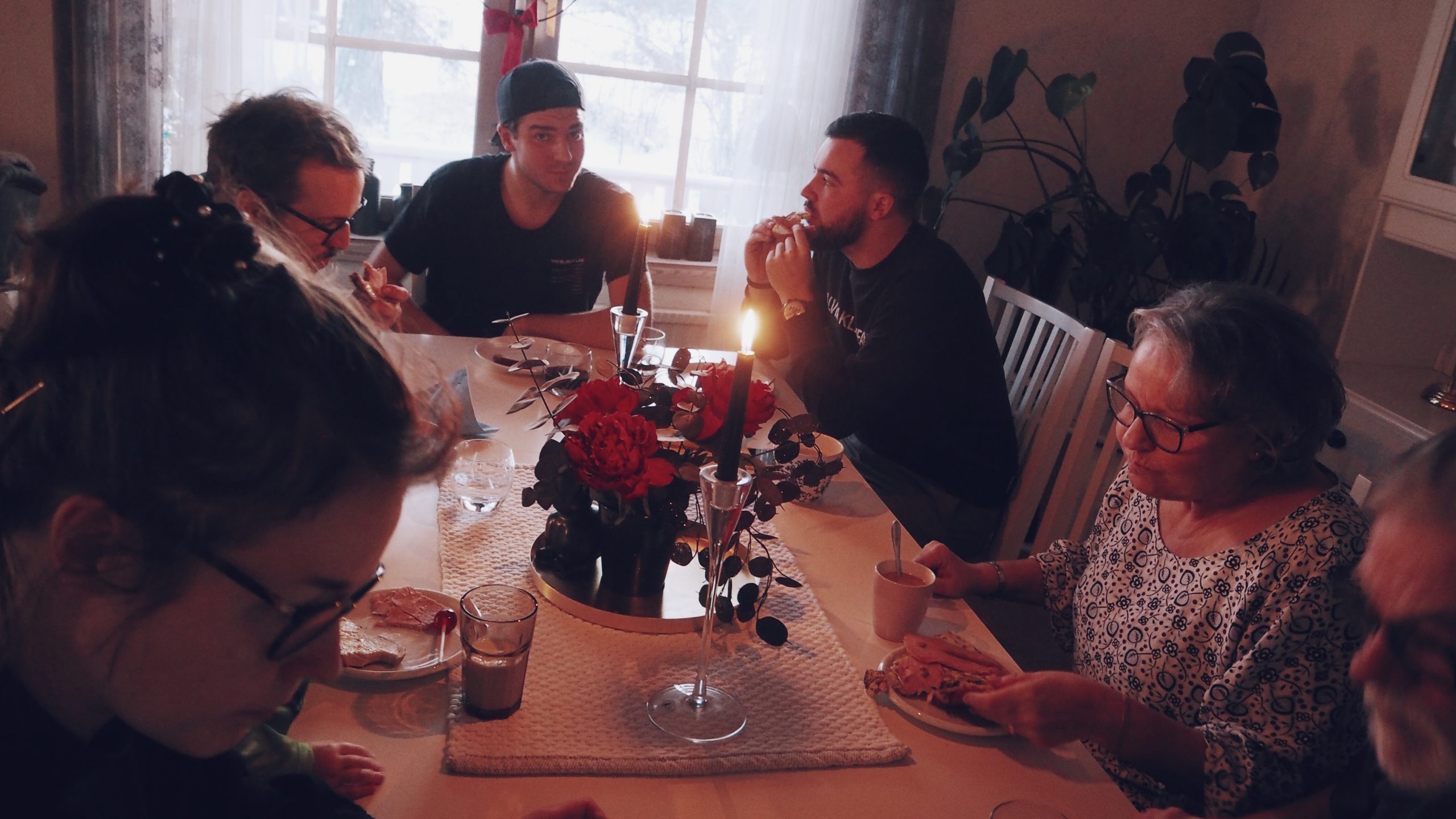 Ja hemma hos mamma & pappa bjöds det på skinksmörgås och fika på kalaset. Ungarna åt väl 5 mackor var tror jag. Ni vet första skinksmörgåsen för året? Hur god är inte den? Nu kommer det bli en del skinksmörgåsar fram till jul. Vi brukar köpa en liten skinka då och då och griljera och ha som pålägg under hela december.