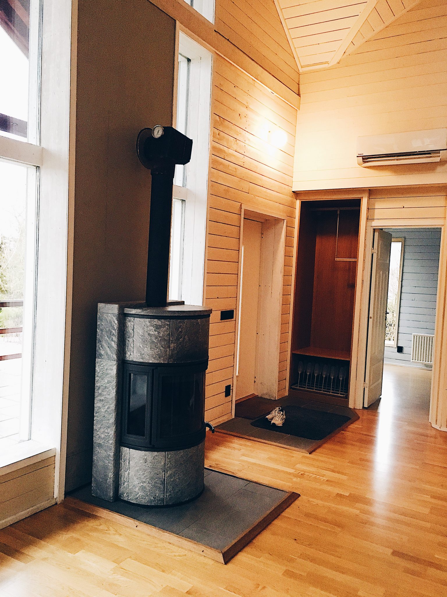 Kaminen och vardagsrumsdelen. Åh, vet ni hur härligt och ligga och kolla in brasan?
