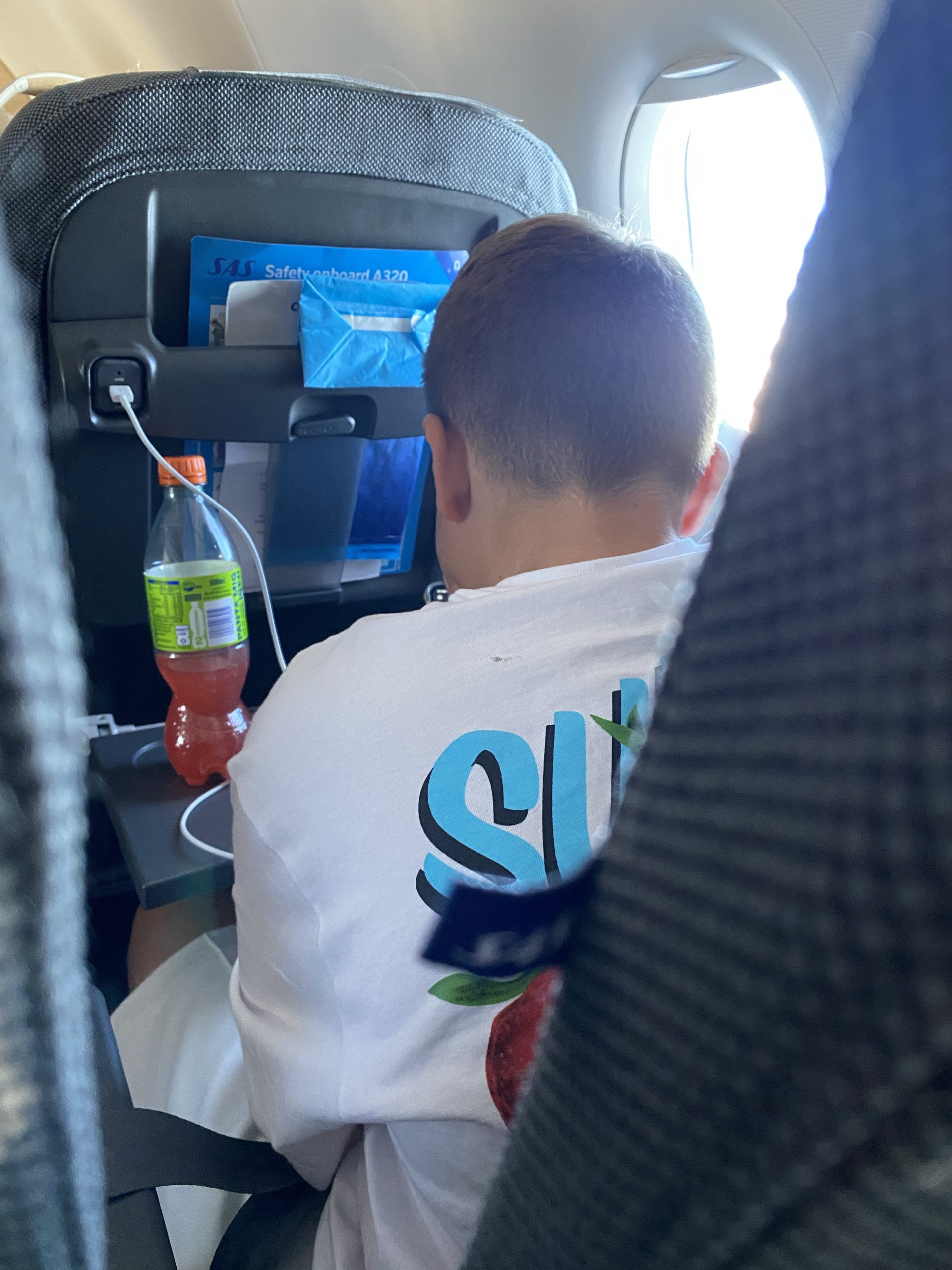 Jag fick, för första gången någonsin, en jättefin flygning. Jag var inte alls så hysteriskt rädd, vi hade Wi-Fi på planet, vi åt frukost, piloten flög oss lugnt och tryggt och dessutom upplevde jag den finaste landningen jag haft. Han smekte ned flygplanet verkligen. Milo sa; ”Jag märkte inte ens att vi landade”. Så 1000 poäng till denna flygning, ska det vara såhär så kan jag flyga imorgon igen.😀