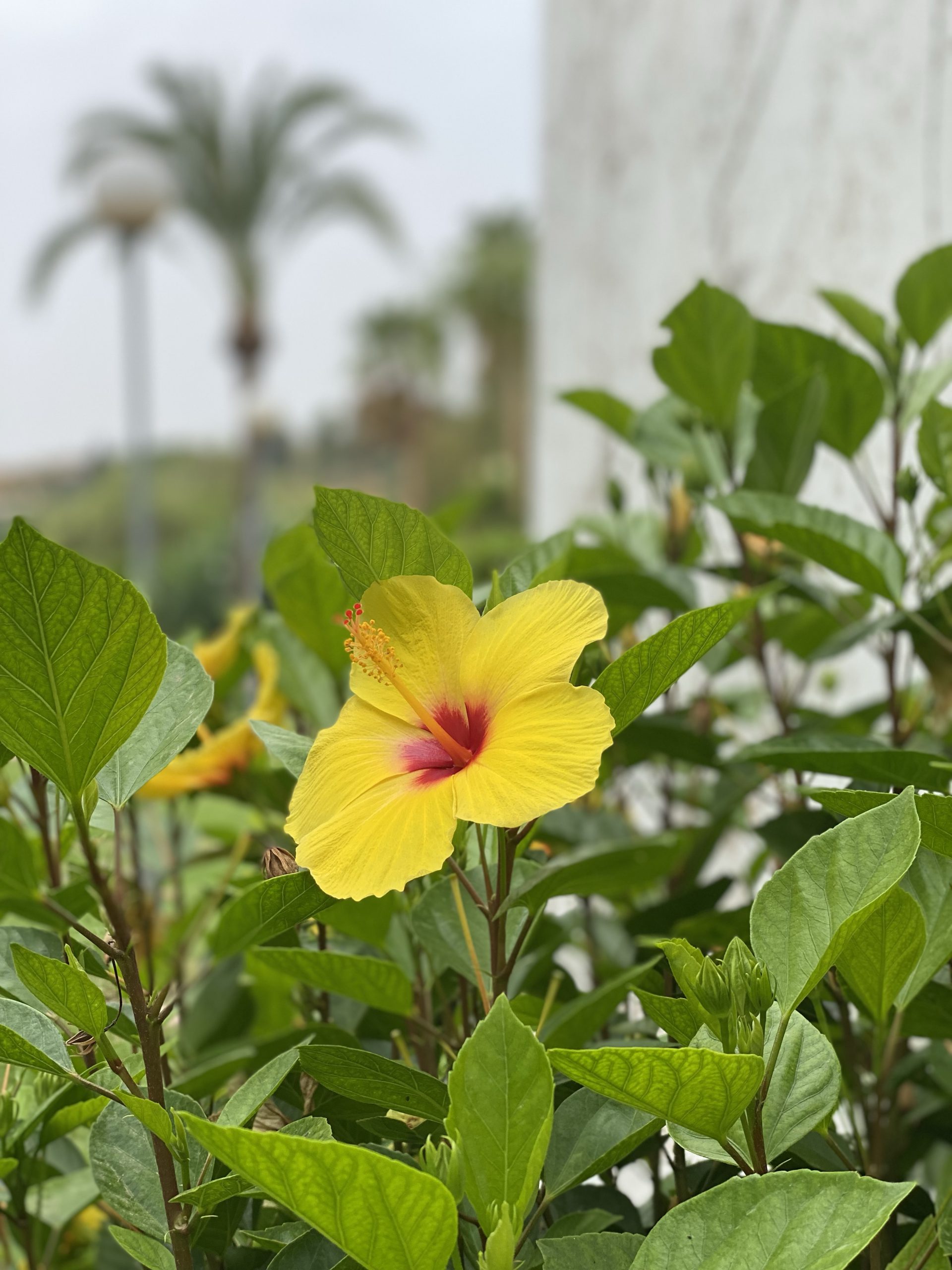 Vi fick vänta på städningen här igår, gick runt och kikade och precis utanför oss växer denna vackra hibiskusblomma.