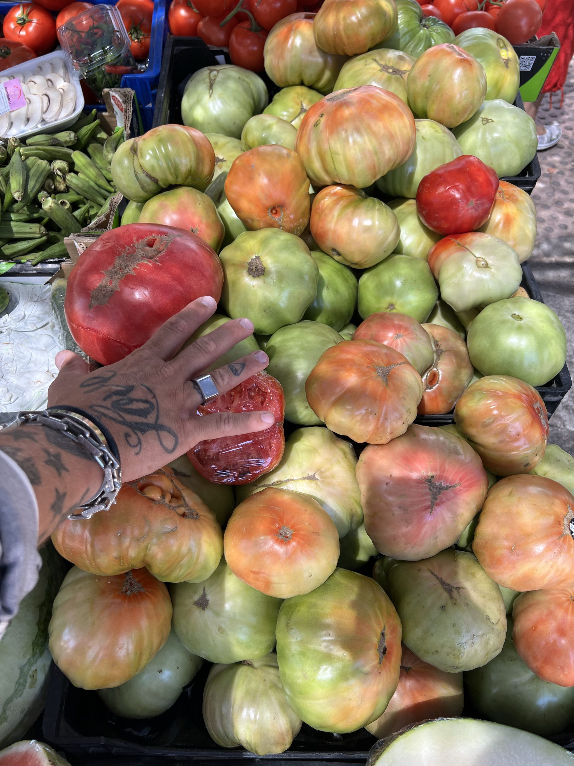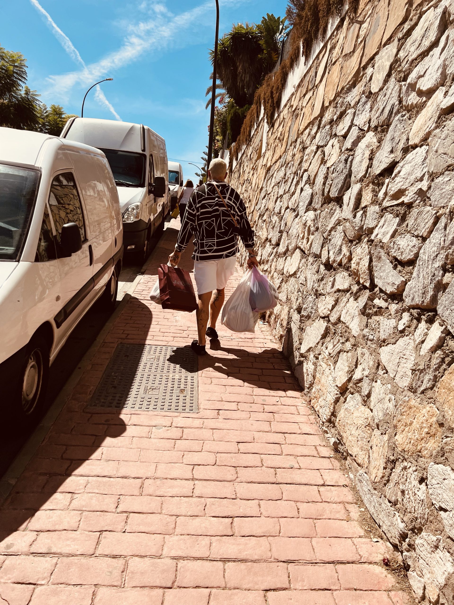 Kolla så han sliter upp för backen, haha… Jaja, han ville bära det mesta så då fick han det. 🤣 Resten av inköpen från marknaden kan jag visa imorgon.