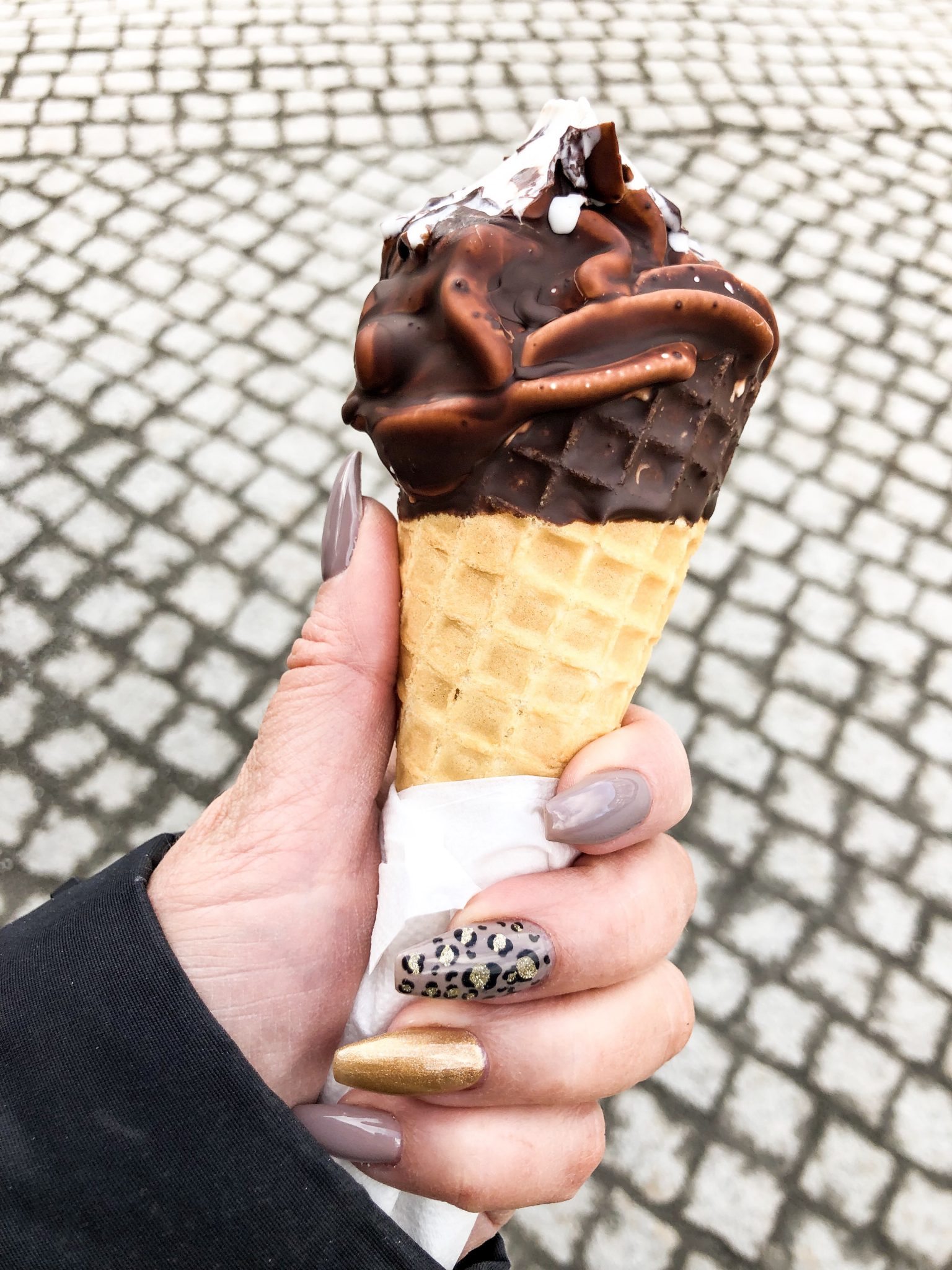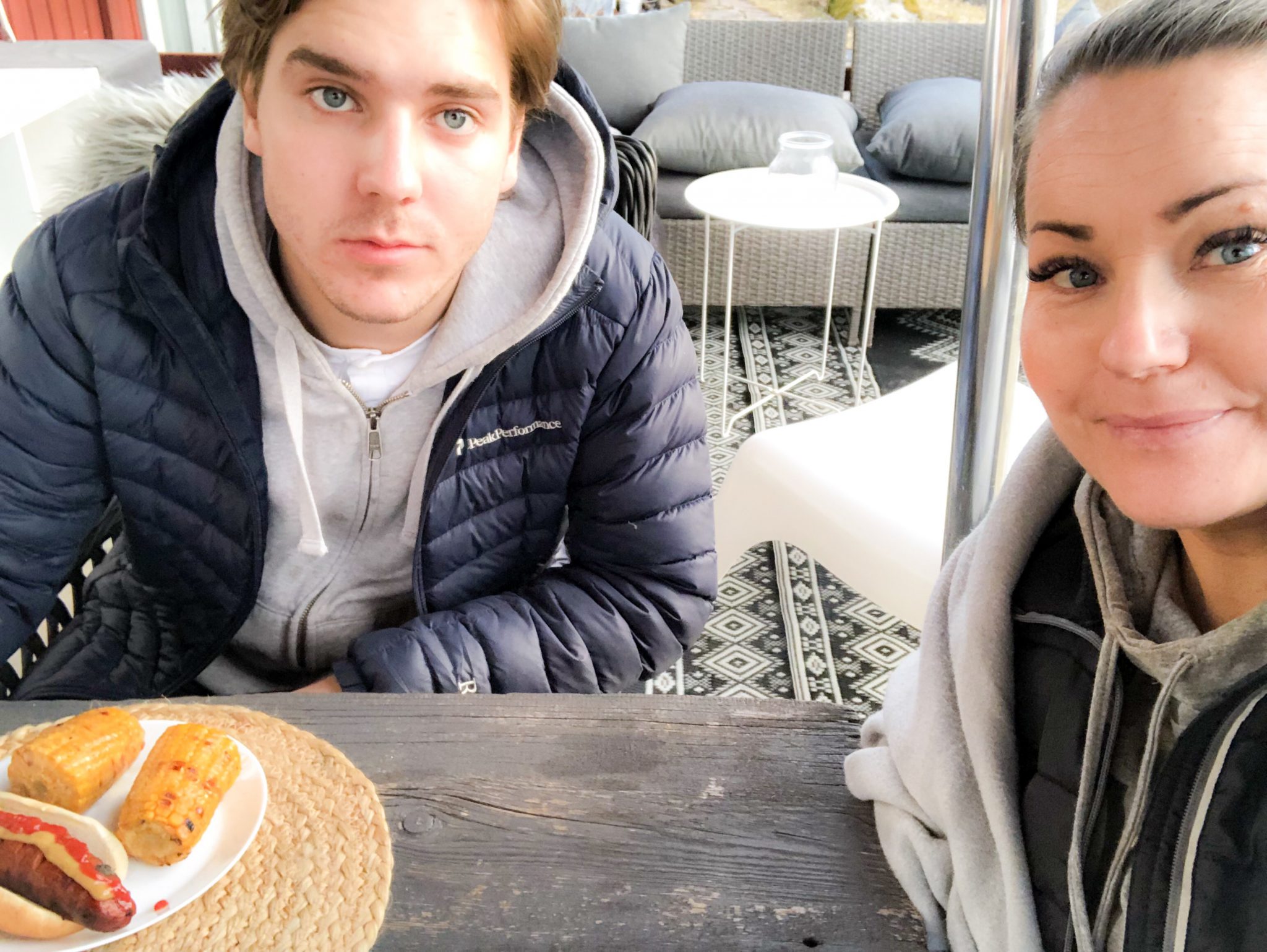 På eftermiddagen idag fick Milo gå ut och lufta sig lite. Han är redo för skolan imorgon då förkylningen blivit bättre. Jag åt min första mjukglass för året. Glutenfri våffla och låglaktosglass bjuder torggrillen på här hemma i småstaden. Sånt LYX! På min mjukglass är det nästan alltid chokladdopp. Godaste i världen!