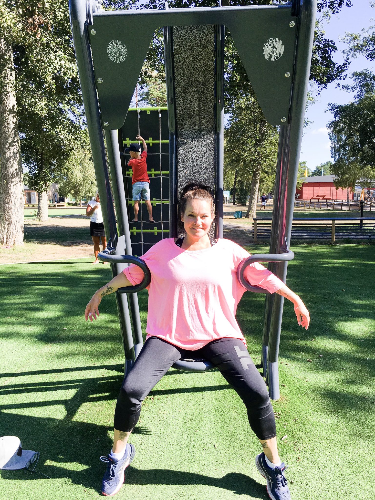 Vi stannade till vid utegymmet också. Tony körde ett hårt pass medan jag lojjade runt lite.