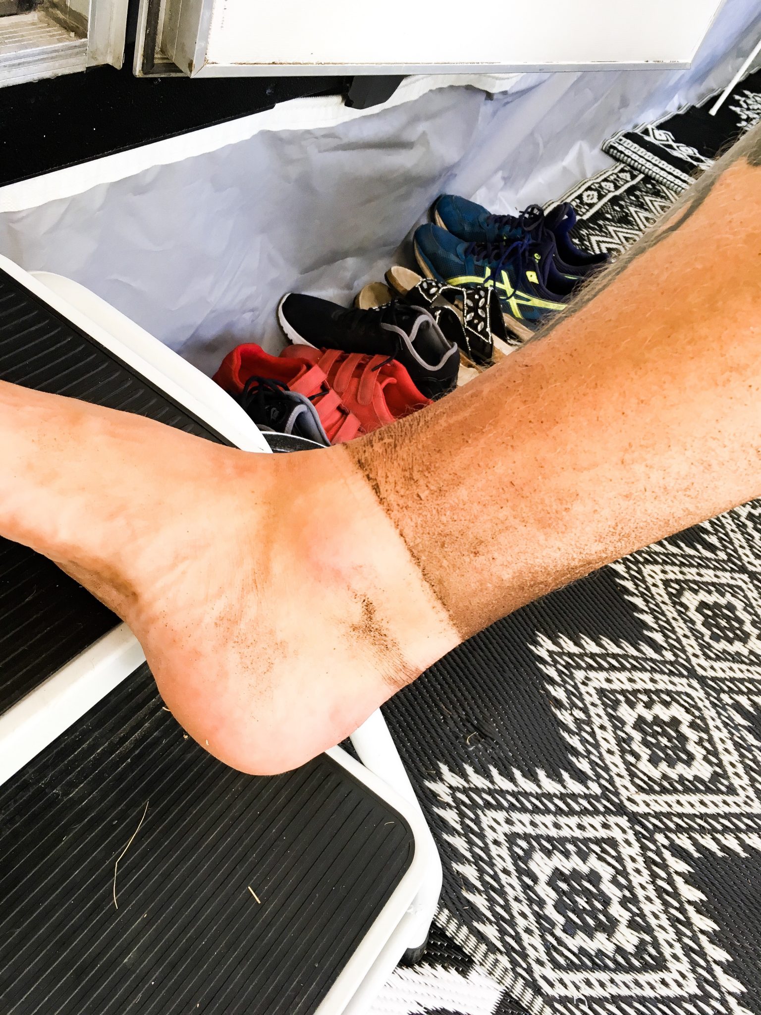 Gissa hur våra ben såg ut när vi kom hem? Såhär. Åh herre, det yrde sand och smuts när vi gick så jag förstår att det blev såhär.