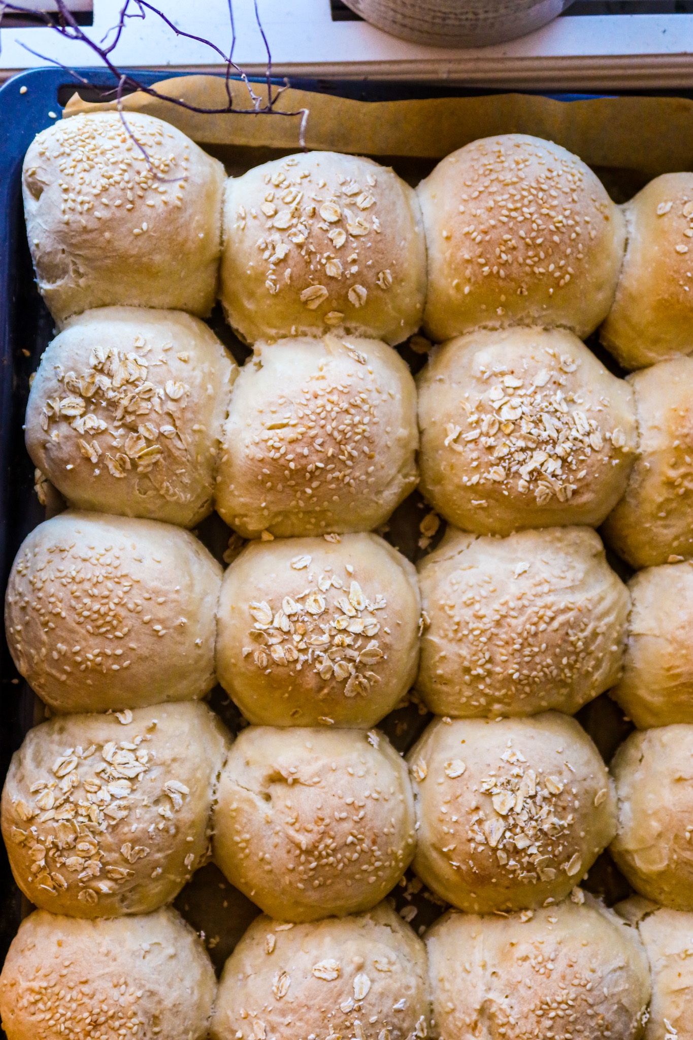 Som jag har sovit, fullmåne natt och allt. Oftast har jag jobbigast natten innan fullmåne, men fullmåne natten sover jag oftast bra igen. Så skönt! Hörni, kickar igång denna Söndag med ett nytt recept, jag gjorde nämligen färska frallor till familjen till frukost igår, och dom blev sååååå goooda. Nej men så himla fluffiga, så himla goda i smaken….och så var det så smidigt och tränga ihop ett gäng på plåten så det blev som ett brytbröd nästan.