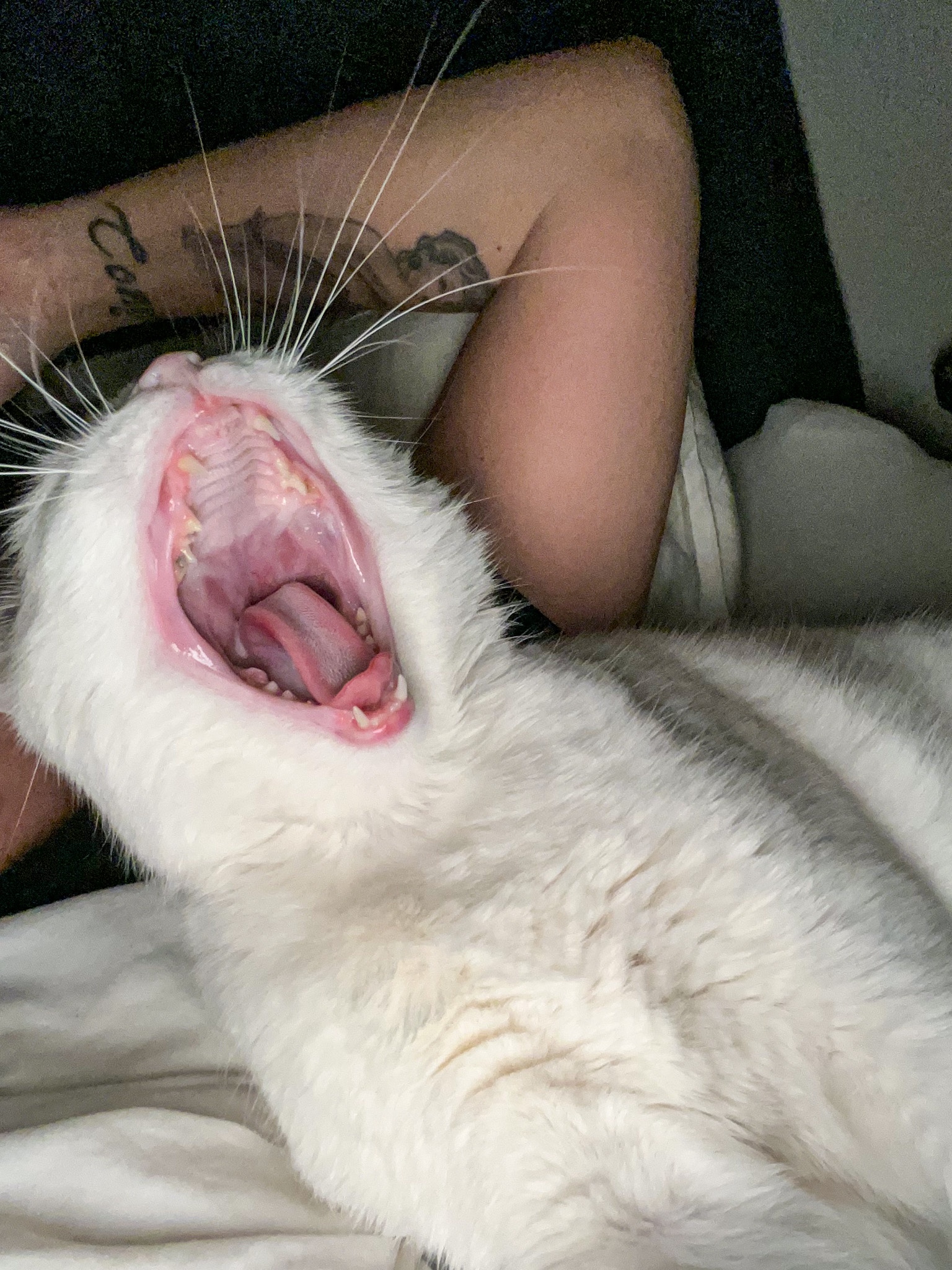Veckans kattgos har också varit mysigt. Hon sover vid mina fötter på natten, men kommer alltid till mig framåt småtimmarna och myser. Lyckades fånga en stor gäsp igår, skrattat åt den här bilden.