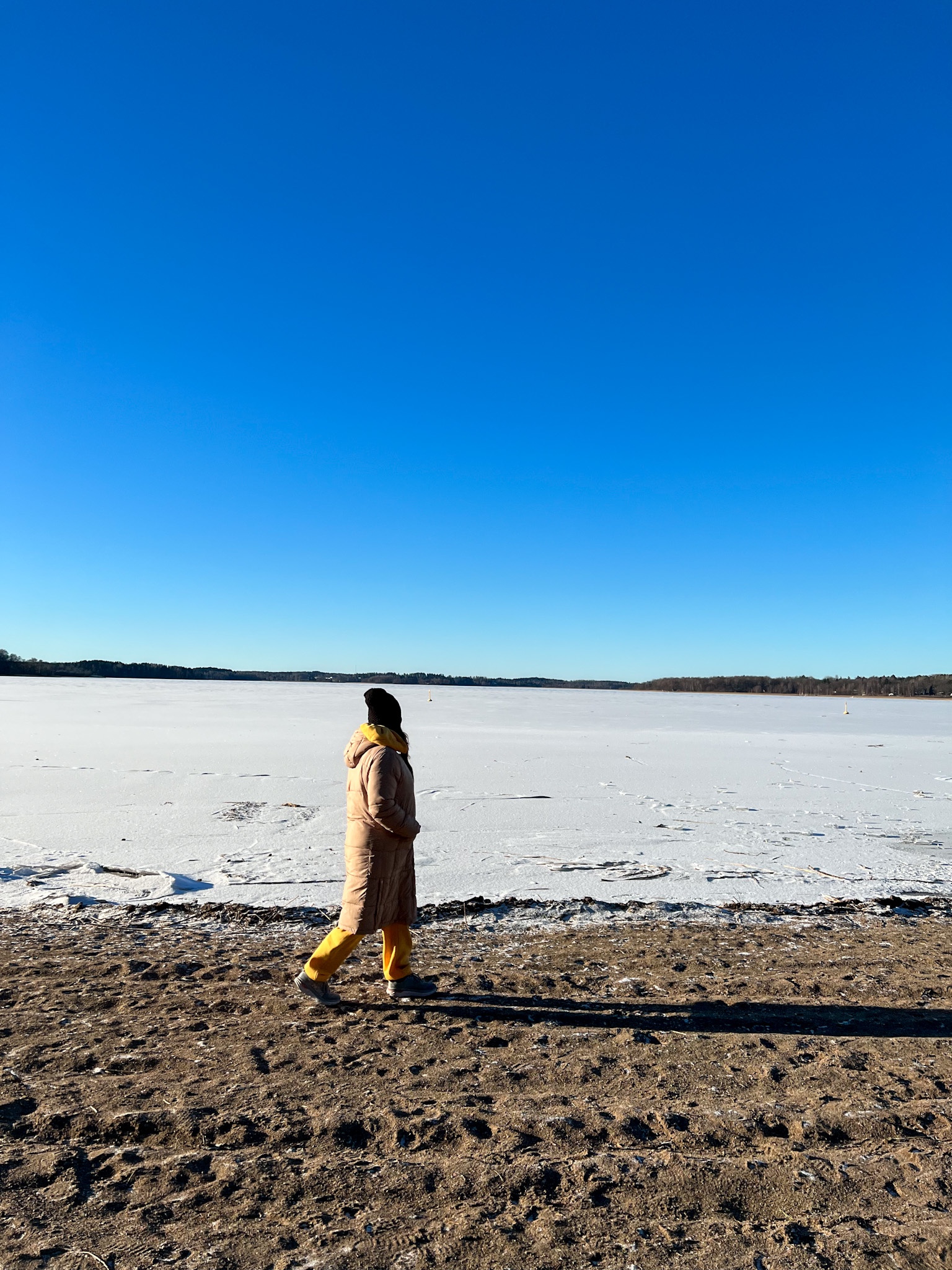 Efter morgonbestyren igår så for vi iväg ut till vattnet för att ta en liten promenad i solen. DET var mysigt. Solen gör en verkligen glad på riktigt, det var ljuvligt att bara få njuta och känna hur den värmde mot kläderna. Hörni, vad man längtar efter vår nu! Jag fick ha fint väder och sol i mitt liv ända till slutet av december, kan bara tänka mig hur mycket många av er längtar som också haft hela den långa hösten här i mörka Sverige.